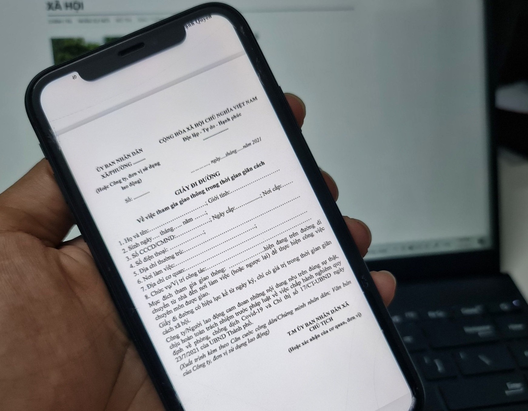 | Mẫu giấy đi đường được UBND Hà Nội thống nhất. Ảnh: H.Q. |