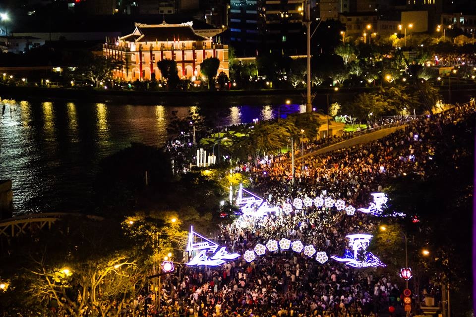 | Một giờ trước thời khắc giao thừa ở TP HCM, dòng người đổ ra đường đêm giao thừa ken kín các khu vực trung tâm. |