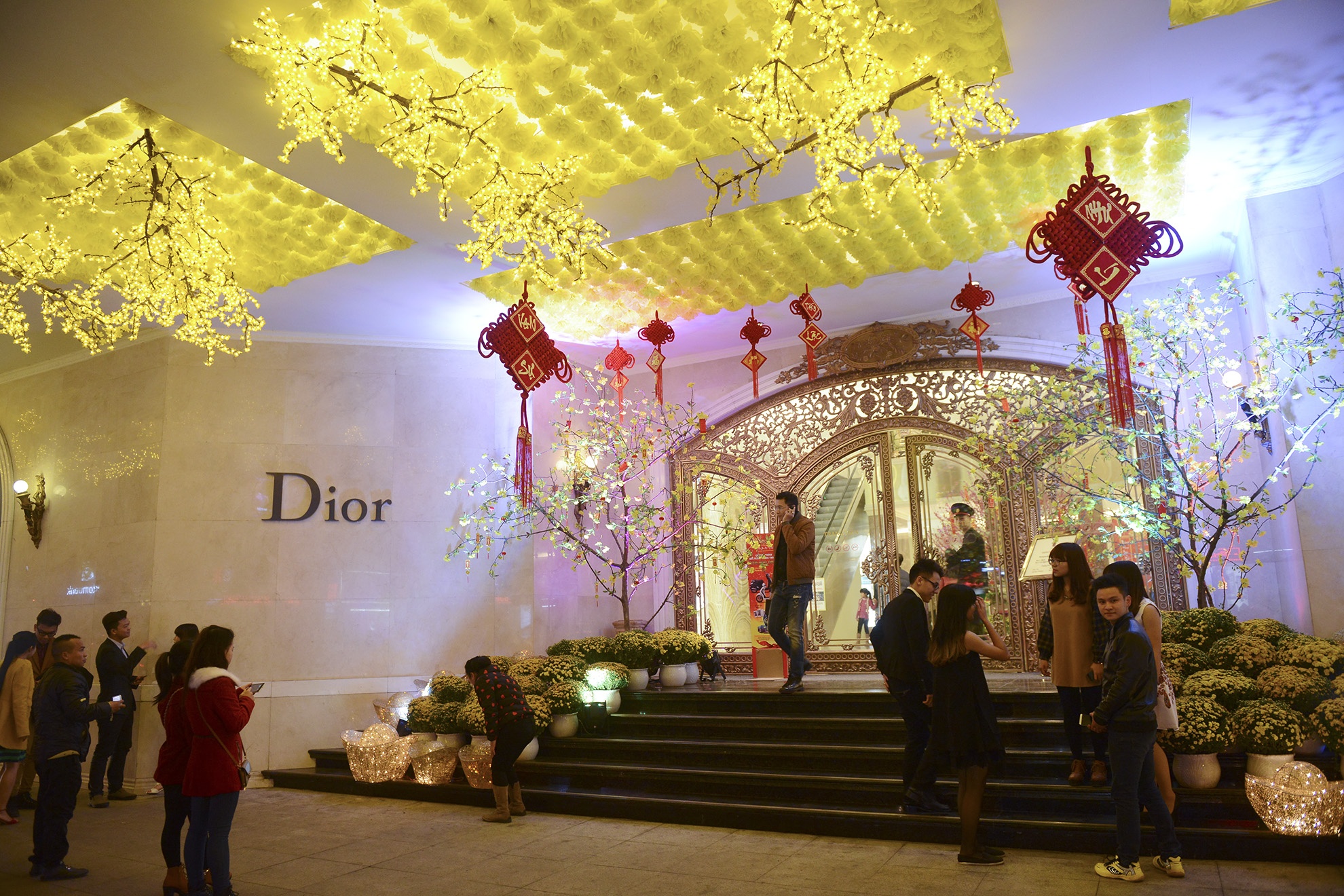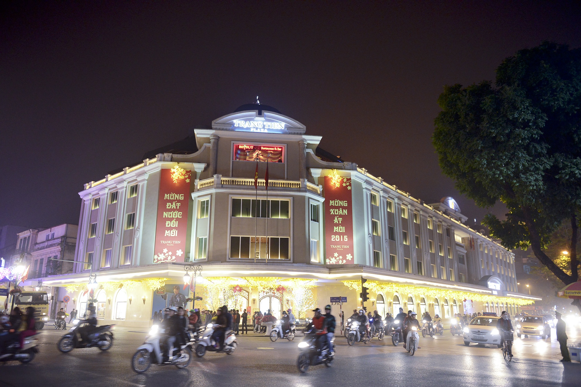 | Tràng Tiền Plaza được kết bởi hàng triệu bóng đèn vàng bên ngoài sảnh, cửa. |