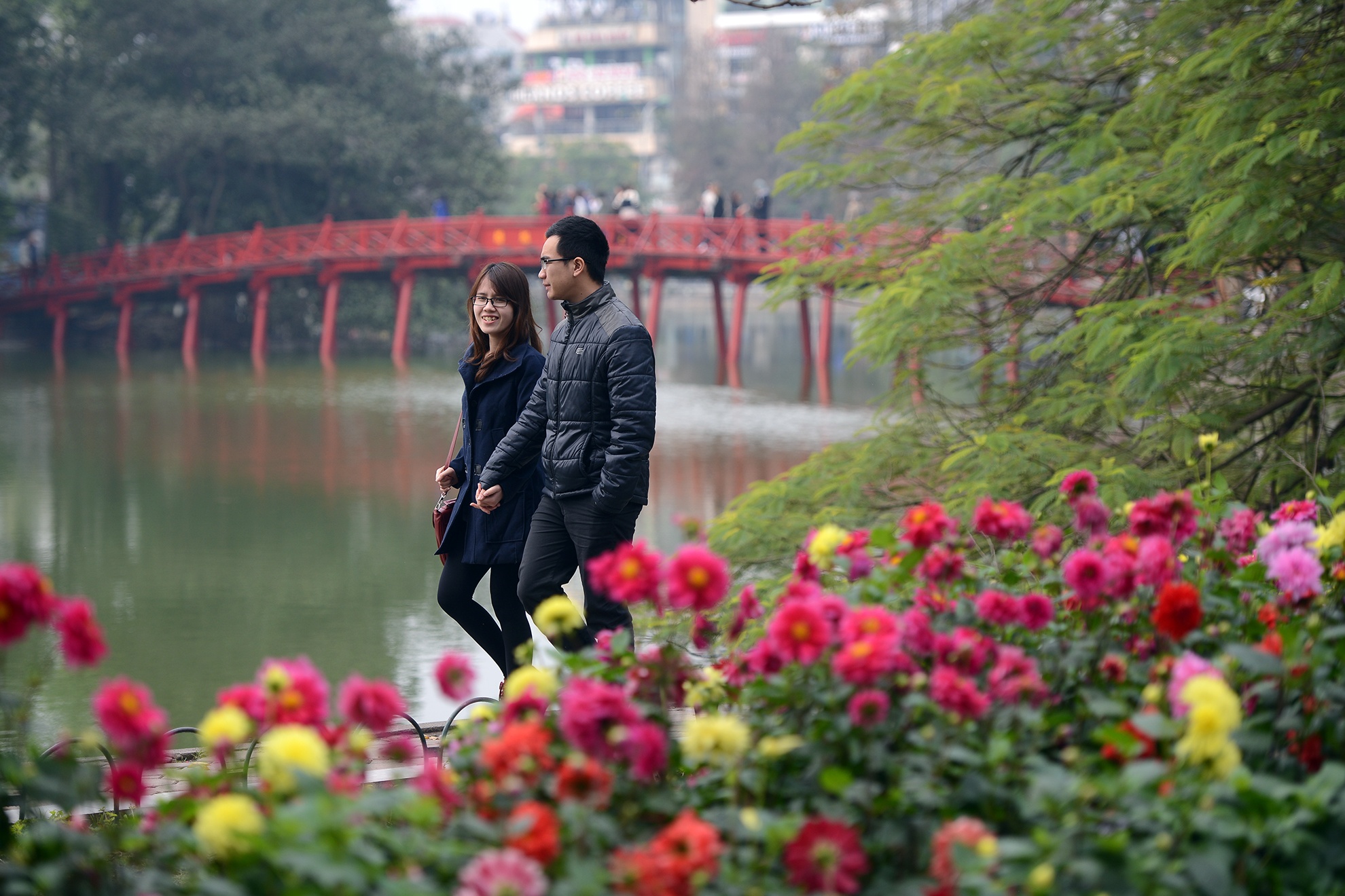 Công việc trang trí này được Hà Nội dần dần triển khai trước Tết gần một tháng và sự hoàn thiện trước 30 Tết khoảng một tuần phục vụ người dân du xuân.