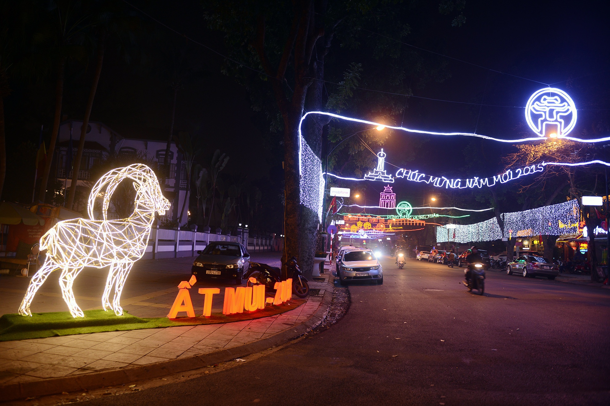 Hàng triệu ngọn đèn hoa kết hình biểu tượng của thủ đô cùng ý nghĩa của năm Ất Mùi đã được trang hoàng khắp các tuyến đường, phố trung tâm thủ đô chuẩn bị chào đón Tết nguyên đán.
