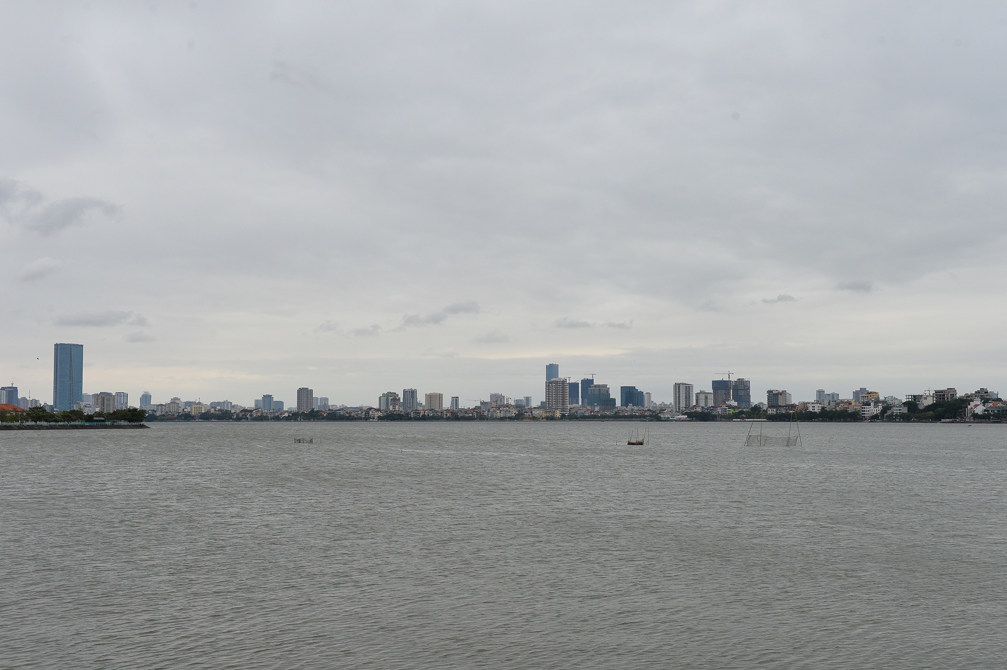 Nhiệt độ ngoài trời ở Hà Nội sáng 1/11 xuống còn dưới 20 độ C. Trời tuy không nắng nhưng trong vắt khiến người tập thể dục buổi sáng có thể nhìn sang bên kia bờ rõ nét từng chi tiết các ngôi nhà.
