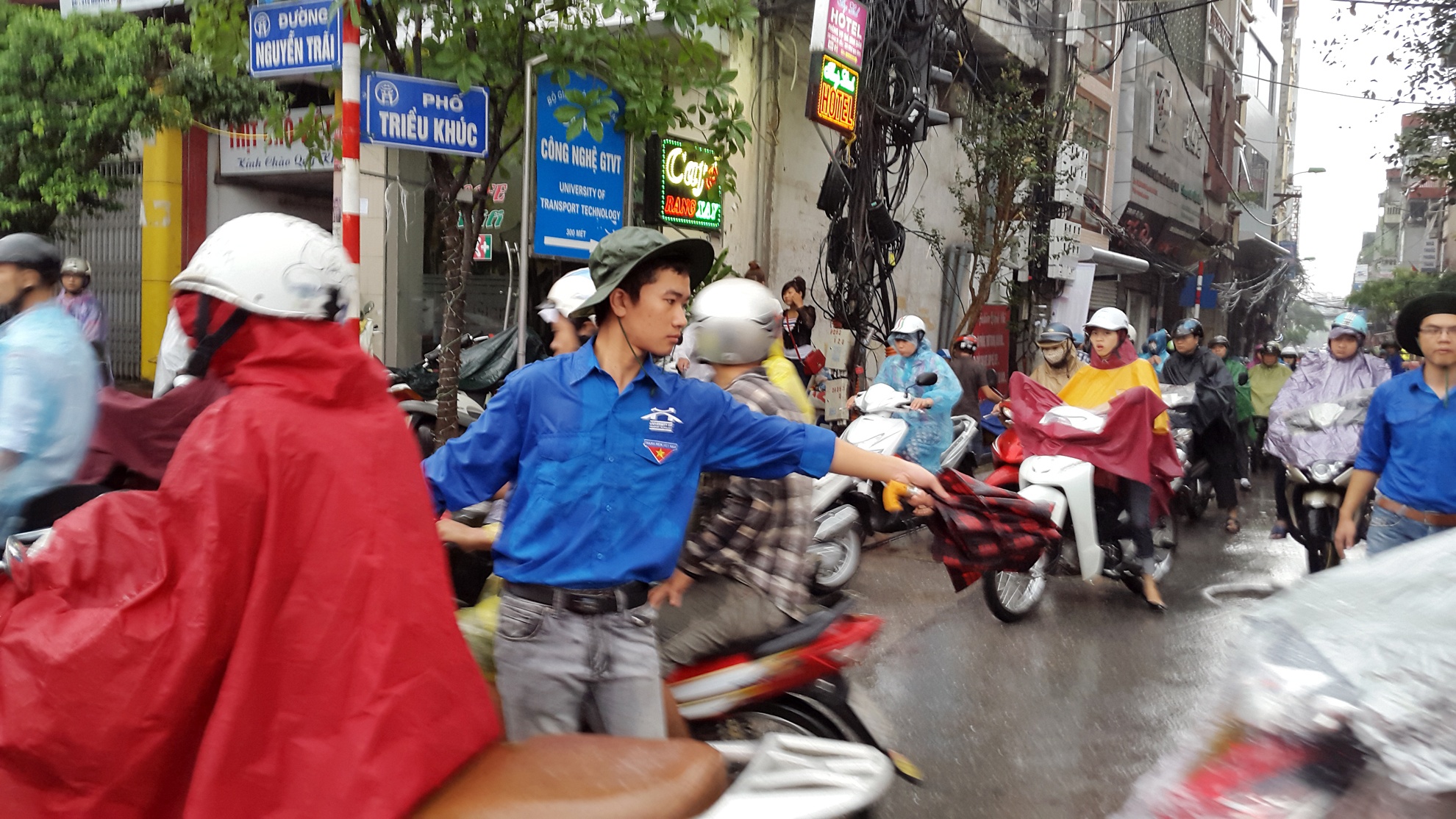 | Các phố nhỏ giao với Nguyễn Trãi như đường Chiến Thắng, Triều Khúc đều có thanh niên tình nguyện phân làn nhưng chỉ giải quyết được phần nào. |
