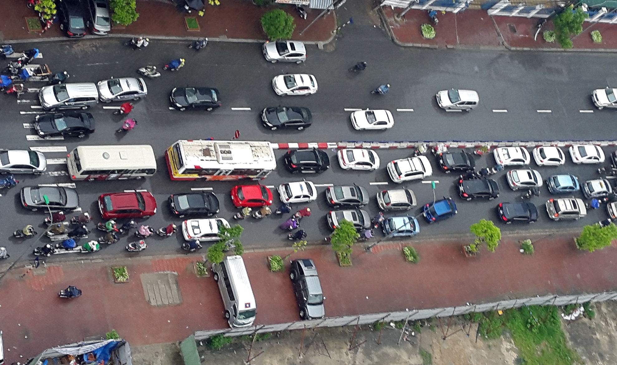 | Một số đoạn có nước ngập tạo khiến phần đường để lưu thông bị co hẹp đúng vào giờ các sĩ tử và phụ huynh đến trường làm thủ tục thi nên cảnh ùn tắc càng trầm trọng. |