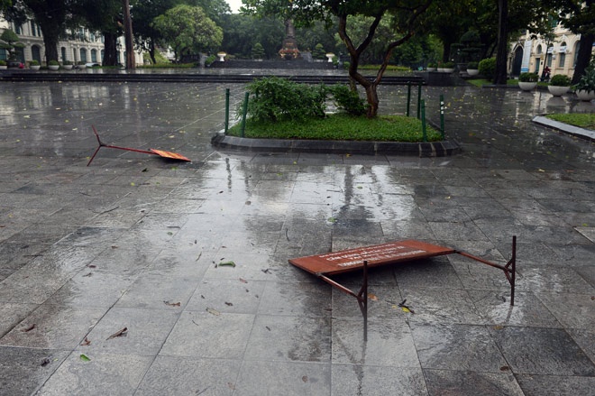 Do ảnh hưởng của bão Haiyan, Hà Nội có mưa nhỏ nhưng gió lớn đêm 10, rạng sáng 11/11. Tại công viên Lý Thái Tổ, khu vực thường ngày có hàng trăm người dân đến tập thể dục sáng nay không một bóng người.
