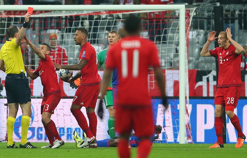 Ngoài ra, trung vệ Holger Badstuber cũng phải nhận thẻ đỏ trực tiếp sau tình huống phạm lỗi với Brown Ideye ở phút 53.