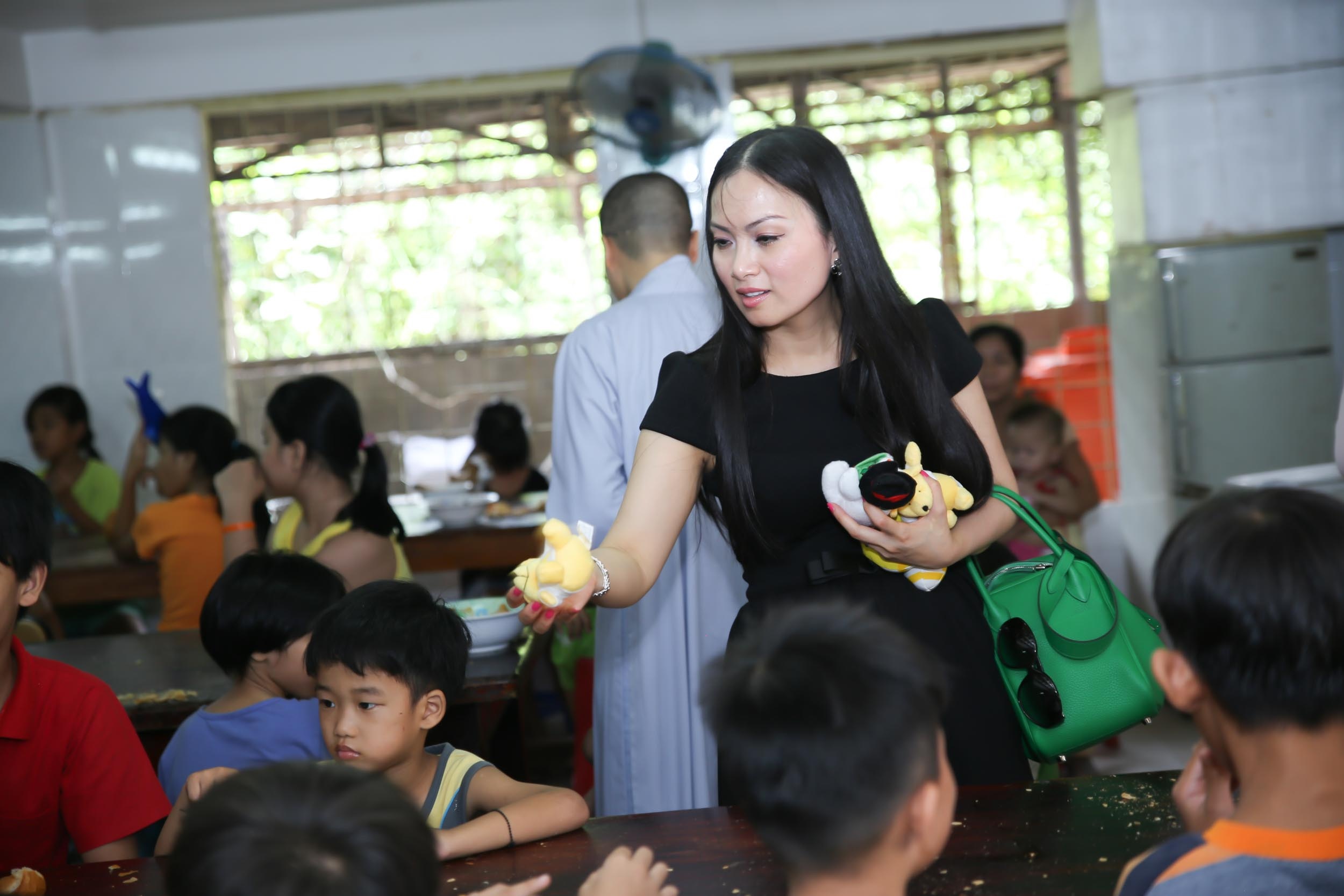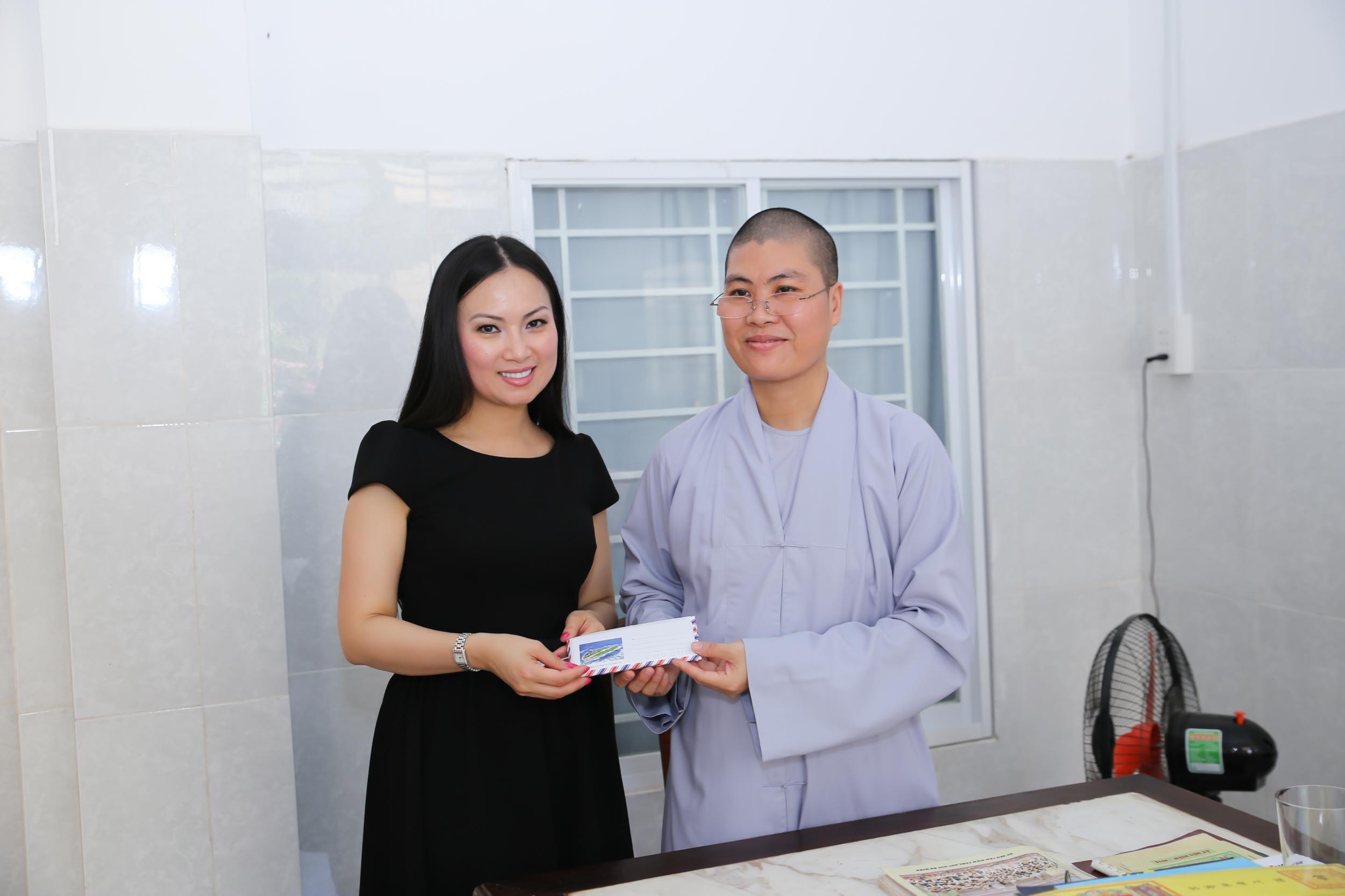 Nữ ca sĩ hải ngoại vừa cùng gia đình, nhà thiết kế Quỳnh Paris đến thăm và trao quà cho các em nhỏ mồ côi tại chùa Diệu Giác (quận 2, TP HCM).