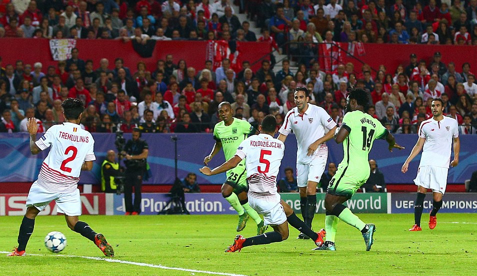 Các pha lập công của Sterling, Fernandinho và Bony giúp đội bóng thành Manchester đánh bại Sevilla 3-1 ngay tại Sanchez Pizjuan, qua đó giành vé vào vòng 1/8.