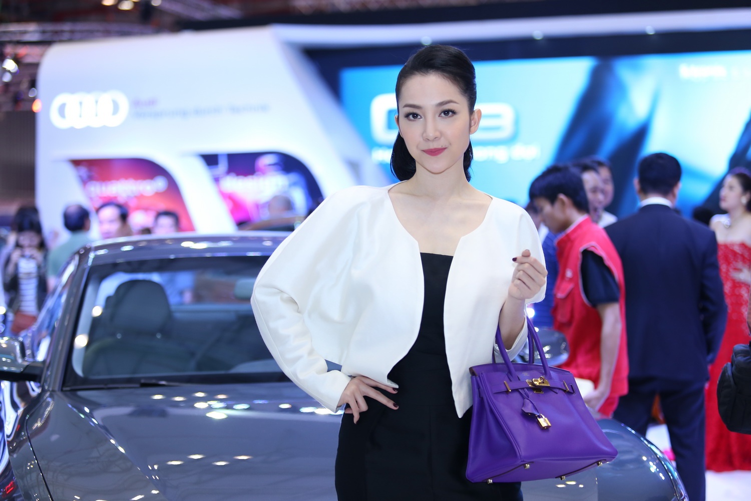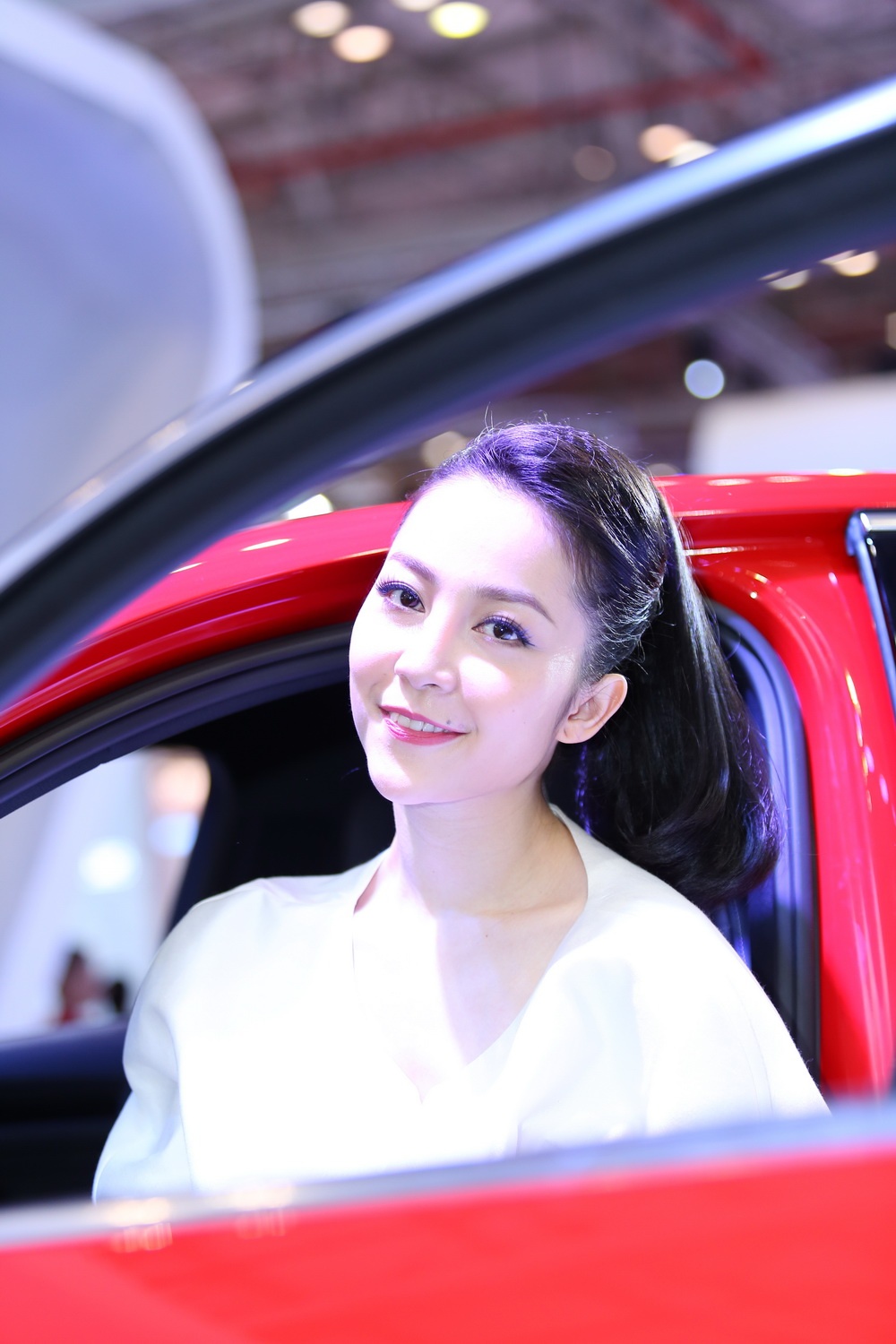 | Xuất hiện tại buổi triễn lãm ô tô sáng nay (24/10), "ngọc nữ" Tăng Thanh Hà ngay lập tức trở thành trung tâm chú ý của cánh truyền thông lẫn các khách tham quan. Ăn mặc giản dị, trang điểm không cầu kỳ, nhưng người đẹp này vẫn gây ấn tượng bởi gương mặt tươi tắn và nụ cười rạng rỡ. |