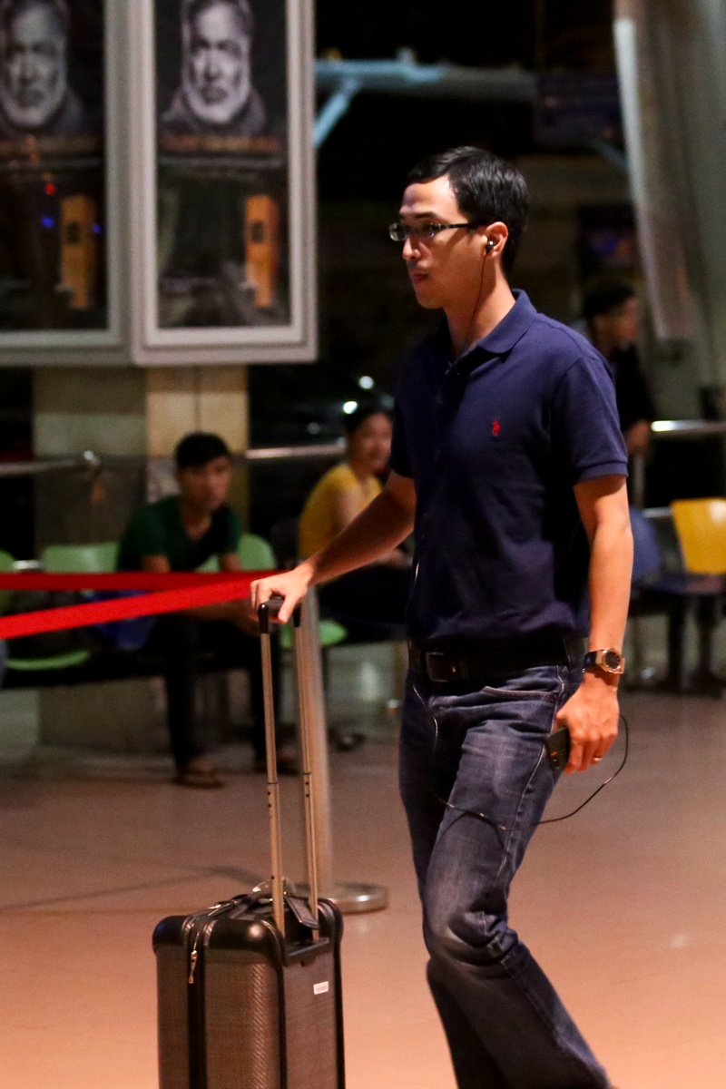 Tối 5/9, Louis Nguyễn có mặt tại sân bay. Anh ăn vận khá đơn giản và luôn đeo tai nghe, cầm điện thoại trên tay...