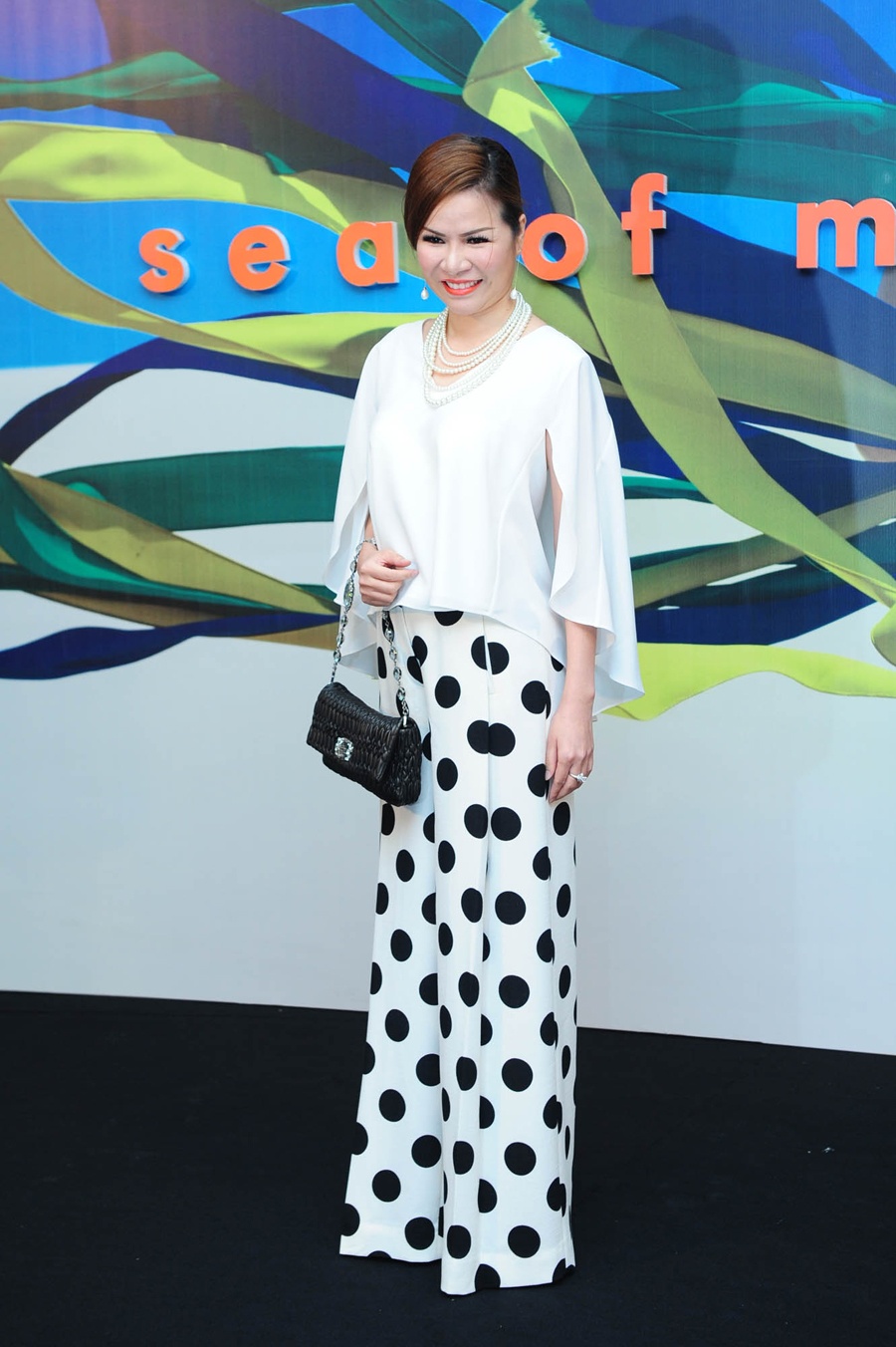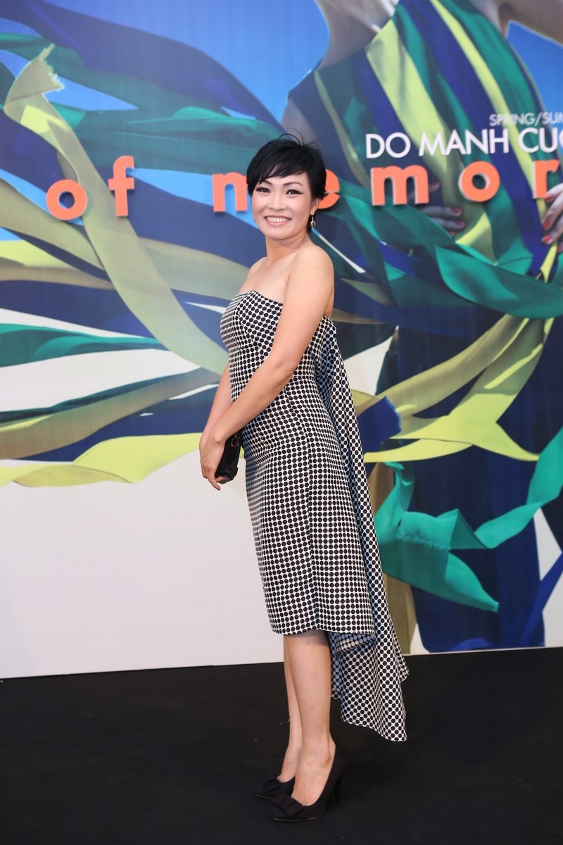 Ca sĩ Mỹ Linh là một trong những khách hàng mới, thân thiết với NTK trong thời gian gần đây. Khi đến dự show Biển nhớ, Mỹ Linh chọn trang phục váy quây dáng suôn khá gợi cảm và thoải mái, giúp giọng ca Hà thành che lấp khuyết điểm về ngoại hình.