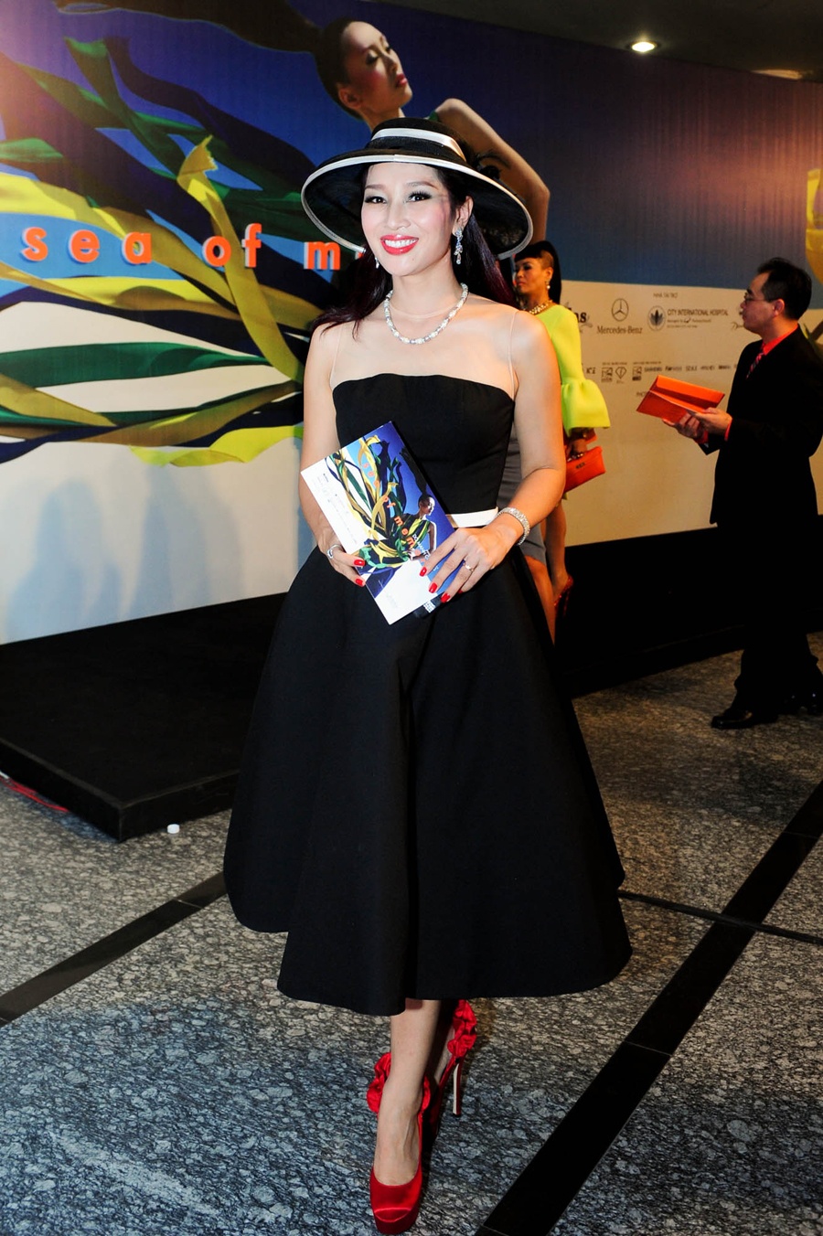 Hai trong số những vị khách đặc biệt đến ủng hộ NTK ra mắt BST Biển nhớ là Tăng Thanh Hà và Ngô Thanh Vân. Cả hai người đẹp điện ảnh không hẹn mà mặc trang phục váy quây gợi cảm. ''Ngọc nữ'' điện ảnh nữ tính và quyến rũ với kiểu váy quây, thân váy bồng xòe.