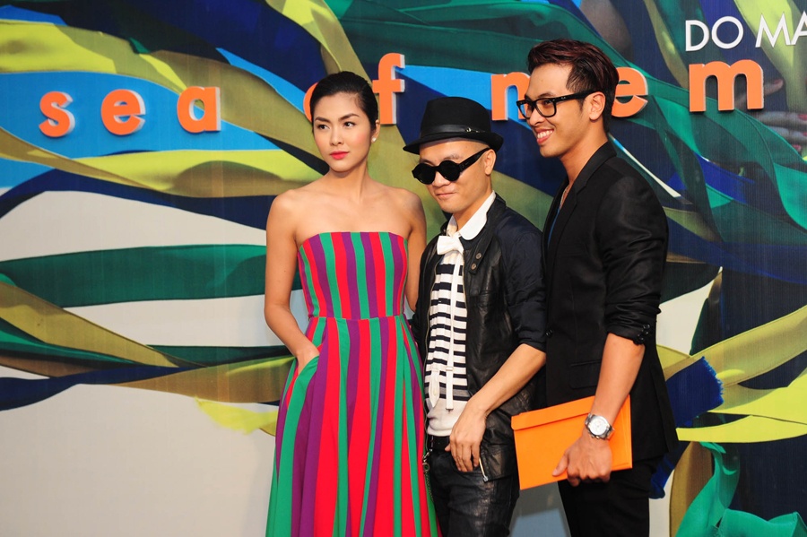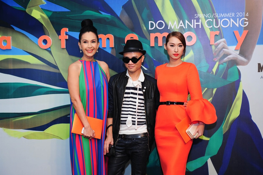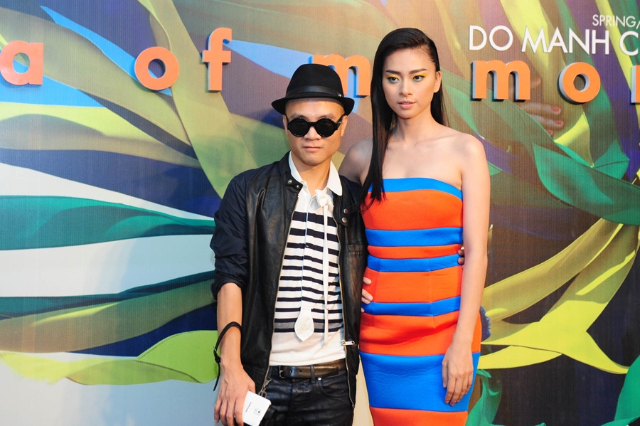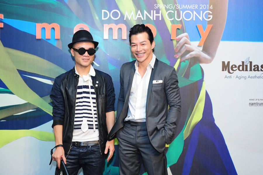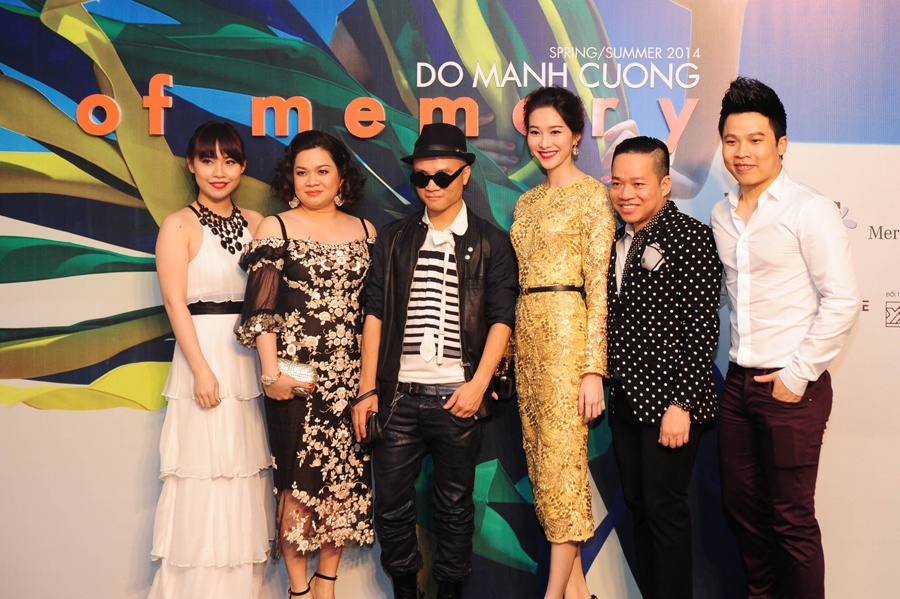 Tối 20/4, show thời trang xuân hè 2014 được mong đợi nhất năm của NTK Đỗ Mạnh Cường diễn ra tại TP.HCM với sự chứng khiến của đông đảo các ngôi sao làng giải trí và người hâm mộ thời trang. Góp mặt trên hàng ghế VIP là những gương mặt gắn liền với thương hiệu Đỗ Mạnh Cường trong nhiều năm qua. Để chào đón những vị khách vàng, cựu giám khảo Vietnam’s next Top Model đã trực tiếp đón các ngôi sao Vbiz ngay trên thảm đỏ. Hà Tăng được bạn thân là người mẫu - stylist Quang Tuyến tháp tùng.