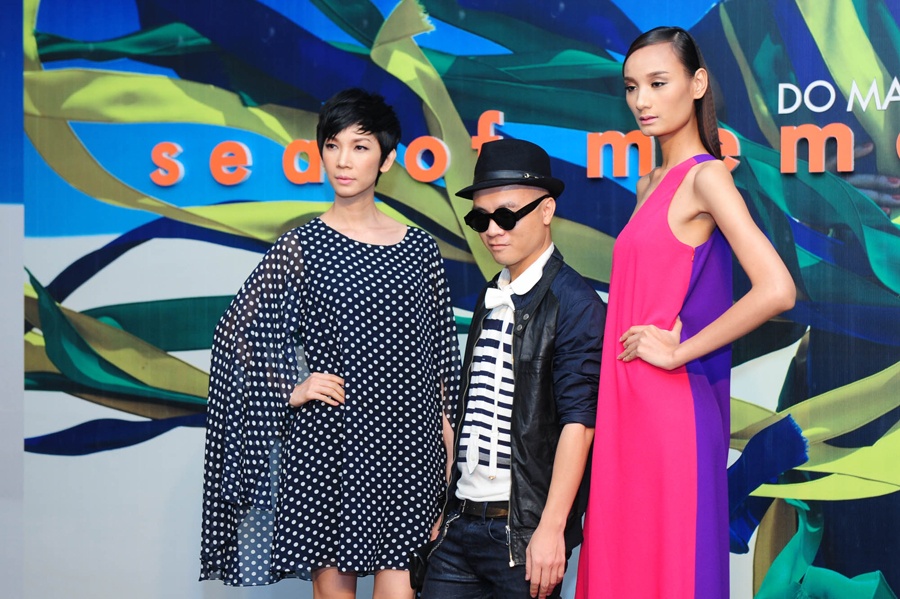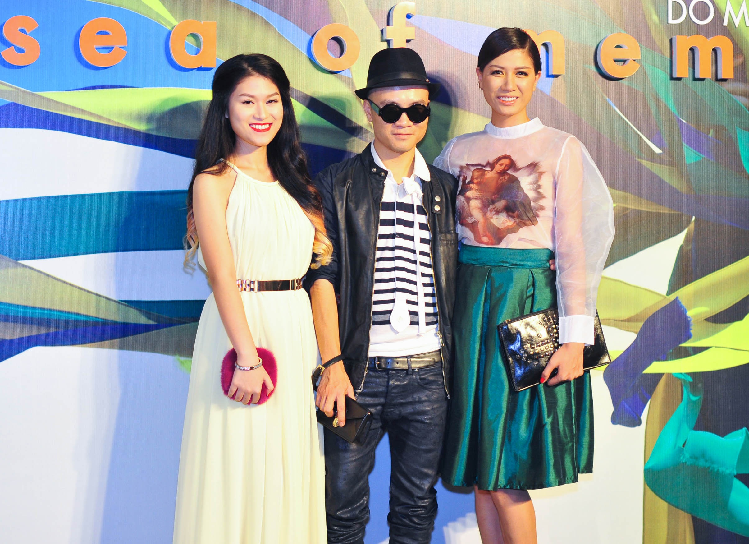 Người đẹp không tuổi Diễm My cũng góp mặt trong show diễn. Chị mặc dáng đầm suôn, cổ áo truyền thống. Mái tóc được búi cao sinh động. Bên trái NTK là người mẫu Quỳnh Thy, cô diện mẫu váy cổ điển, tông màu cam hợp xu hướng mùa hè 2014.