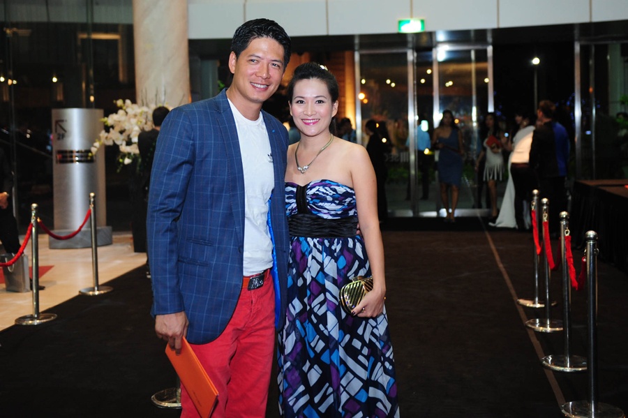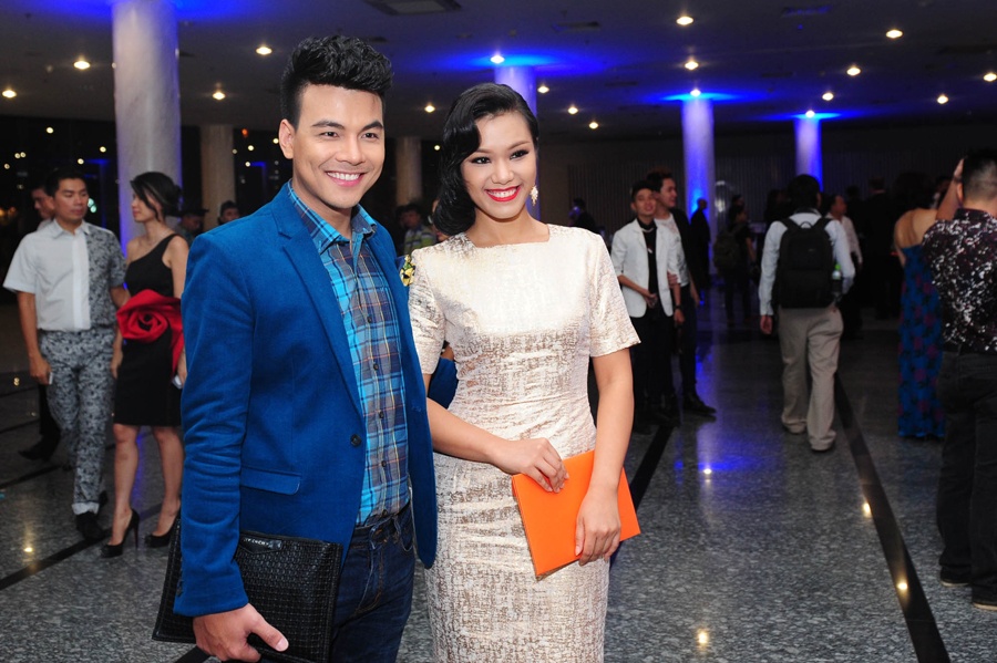 | Phương Vy đến dự tiệc cùng MC Duy Hải. |
