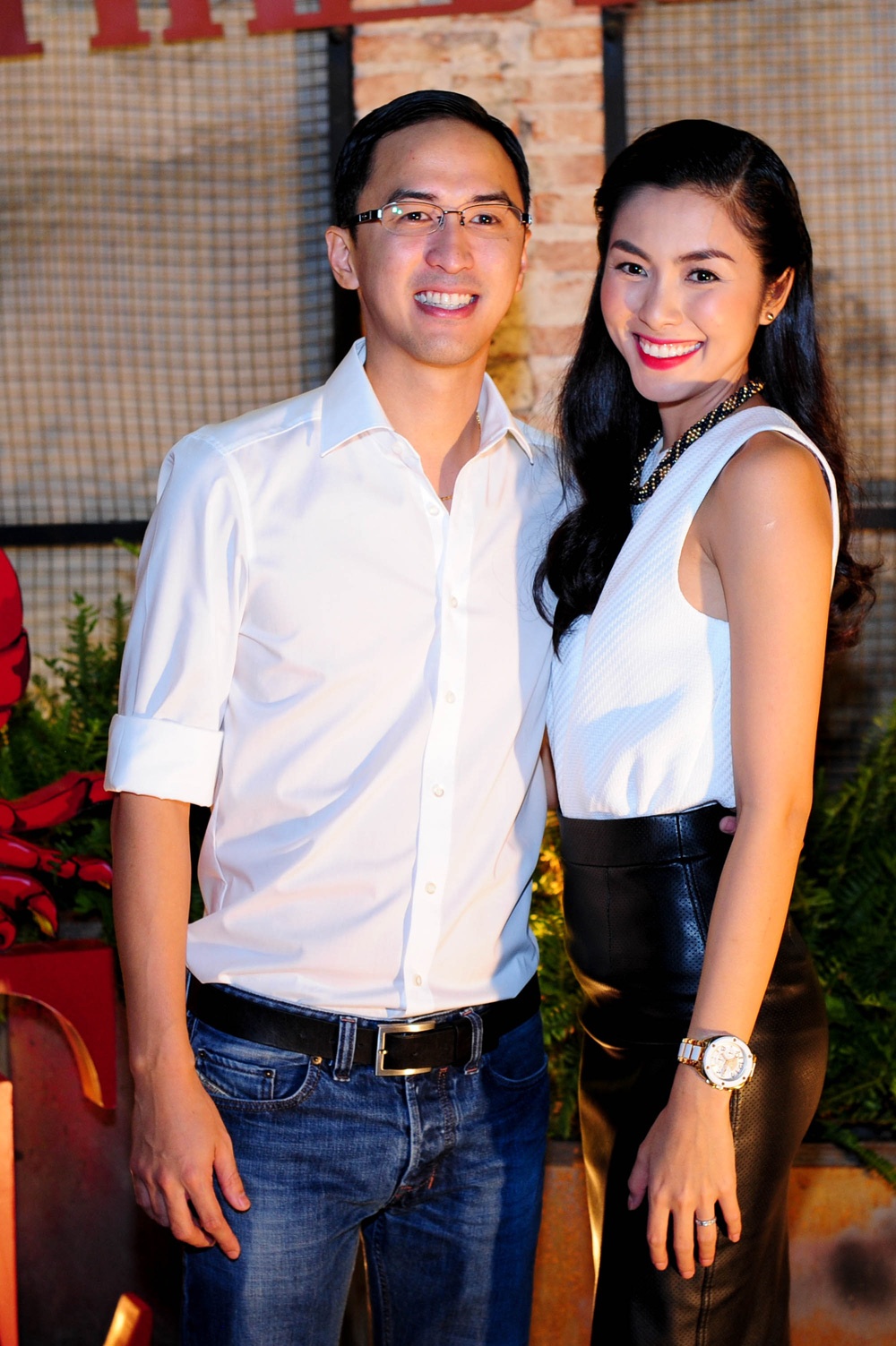 | Ngọc nữ làng điện ảnh cười rạng ngời bên ông xã Louis Nguyễn. Tăng Thanh Hà nói, xuất phát từ sự yêu thích những món ăn này mà cô muốn mở nhà hàng. |