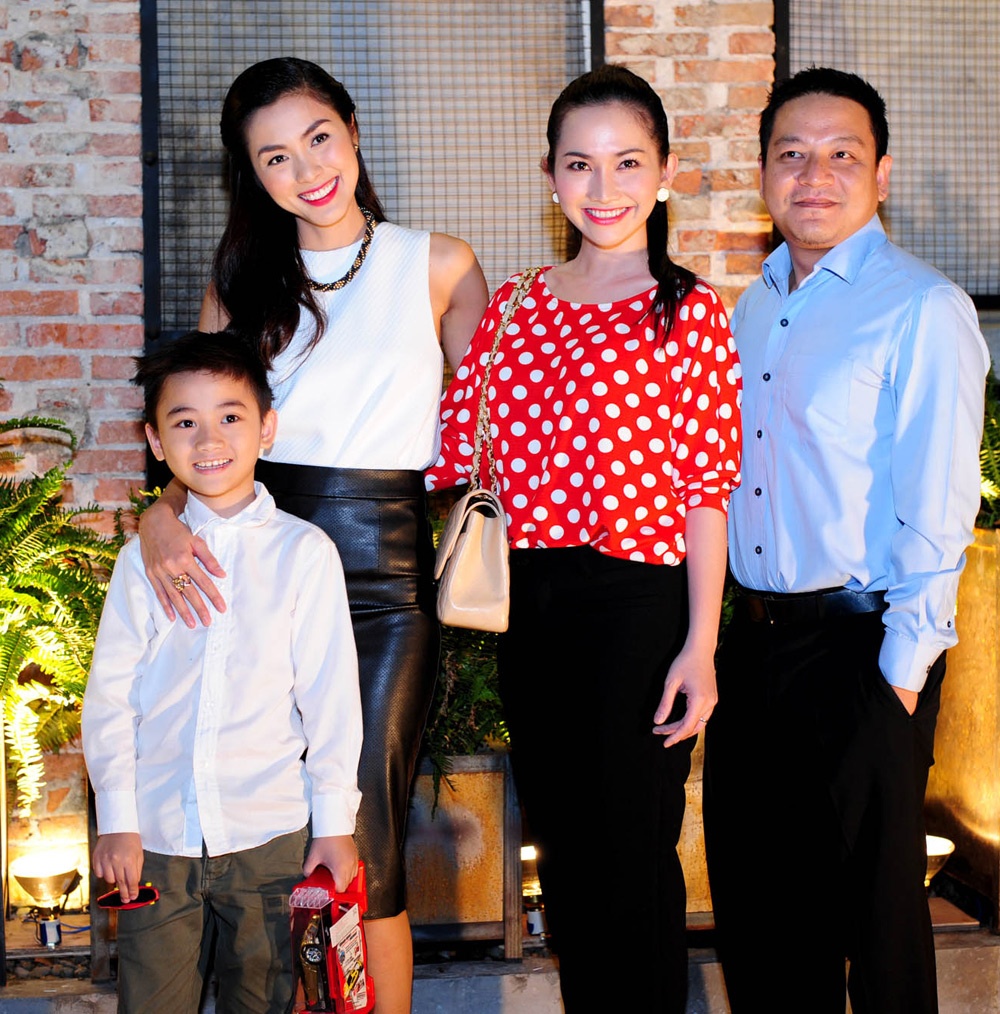 | Kim Hiền đưa vị hôn phu và con trai đến khai trương nhà hàng của bạn thân. Tăng Thanh Hà rất vui khi người bạn thân nhất trong showbiz của cô có mặt. |