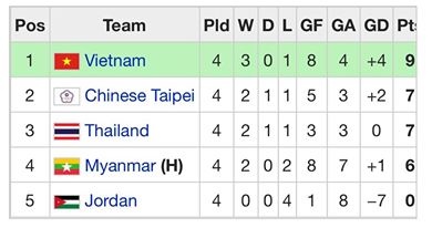 Sau 4 trận, thầy trò HLV Norimatsu Takashi có 9 điểm và vươn lên dẫn đầu. Trong trận đấu sau đó, Myanmar thắng Đài Loan 3-1, nên tuyển nữ Việt Nam giành vé vào vòng loại thứ ba cùng các đội Australia, Nhật Bản, Trung Quốc, Hàn Quốc và CHDCND Triều Tiên.