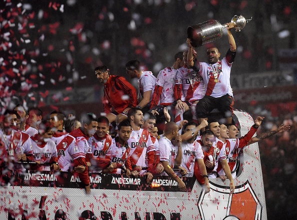 | Niềm vui của các cầu thủ River Plate sau khi chấm dứt gần hai thập kỷ không vô địch giải đấu danh giá nhất Nam Mỹ cấp CLB. |