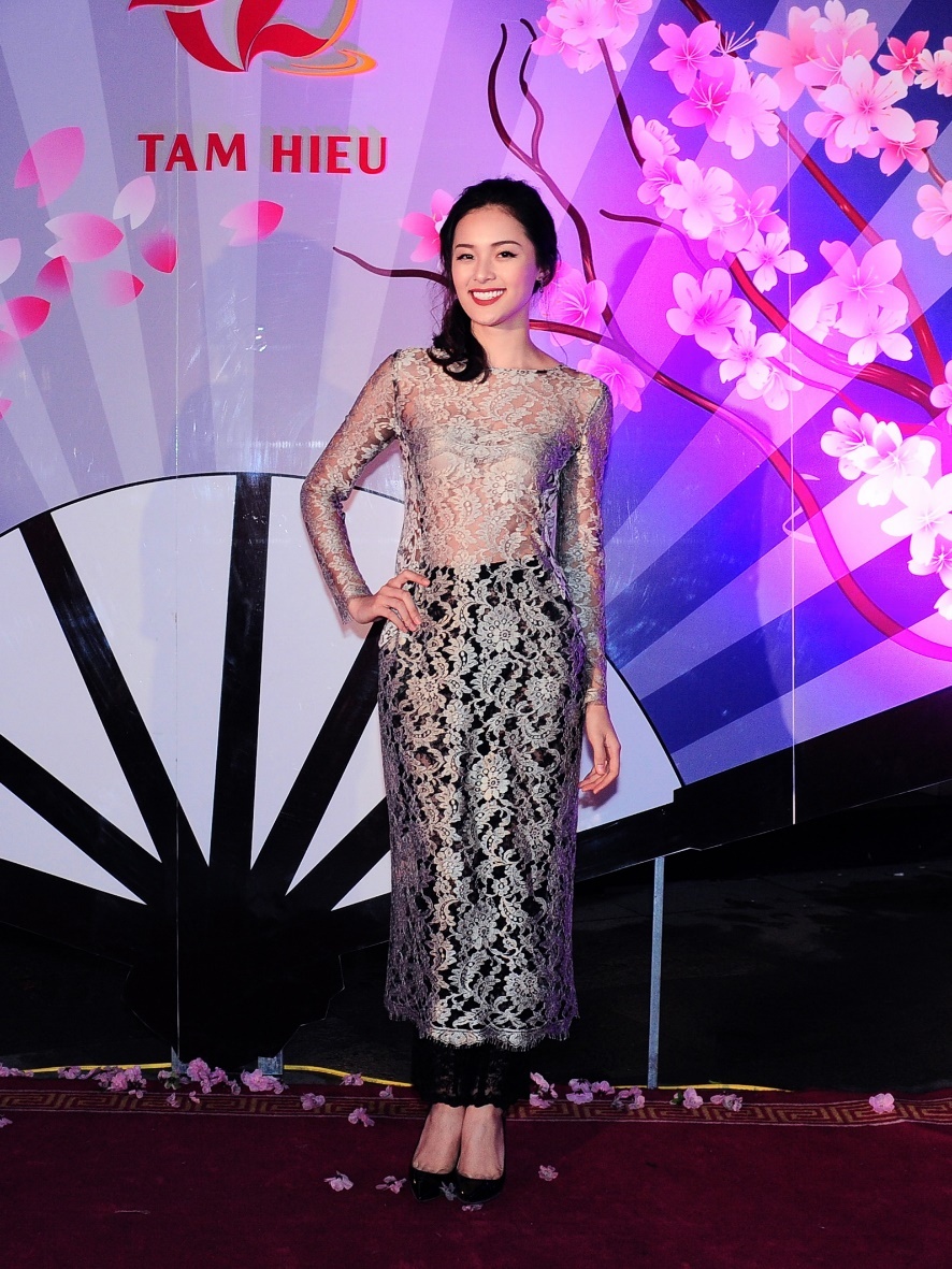 Dù thời tiết mùa đông Hà Nội có mưa phùn và lạnh buốt nhưng Hạ Vy vẫn nổi bật với bộ áo dài chất liệu ren mỏng manh. |