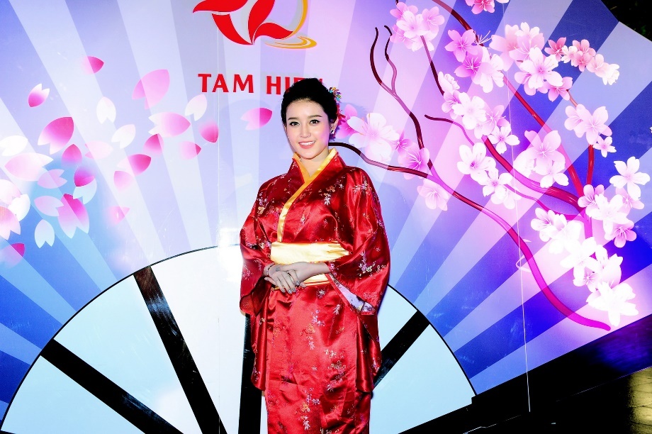 Tham gia sự kiện còn có Huyền My. Á hậu rạng ngời khoe sắc với trang phục truyền thống của Nhật Bản. |