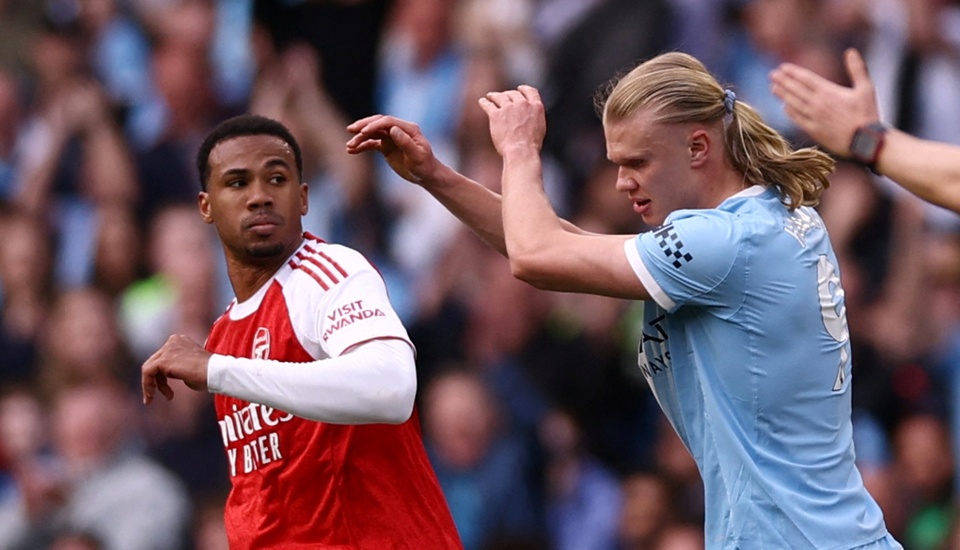 Trung vệ Gabriel được HLV Mikel Arteta cắt cử theo kèm Haaland như hình với bóng. Phần lớn những pha va chạm quyết liệt trên sân đều đến từ hai cầu thủ này.