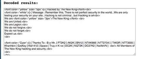 | Hình ảnh trang web do các bạn trẻ "hack" được, với biệt danh đặt bên dưới |
