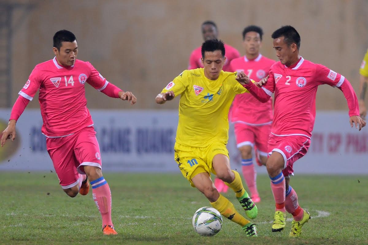 Trận đấu giữa đội chủ nhà HAGL và Than Quảng Ninh diễn ra với nhiều pha phối hợp kỹ thuật. Ảnh: Gia Bảo.