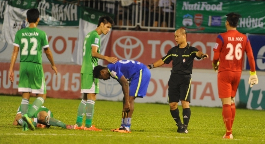 | Tấm thẻ đỏ của Moussa đẩy HAGL vào cảnh khó khăn. Ảnh: Gia Bảo. |
