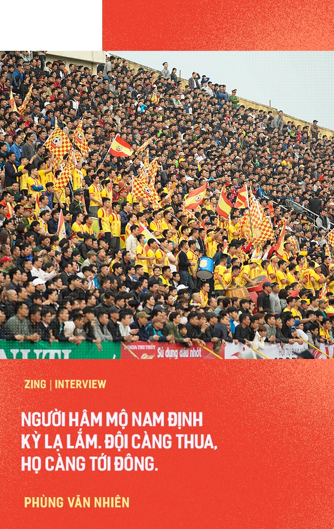 Bạn phải đứng trên thảm cỏ sân Thiên Trường, phải lắng nghe tiếng trống, nghe tiếng cổ động viên thành Nam, bạn mới hiểu tôi thèm điều đó thế nào. Người hâm mộ Nam Định kỳ lạ lắm. Những nơi khác, đội thắng, đua vô địch, cổ động viên mới tới sân. Còn nơi này, đội càng thua, cổ động viên càng đến đông. Người ở đây xem bóng đá bằng tình yêu chân thật, chẳng cần điều kiện nào.
