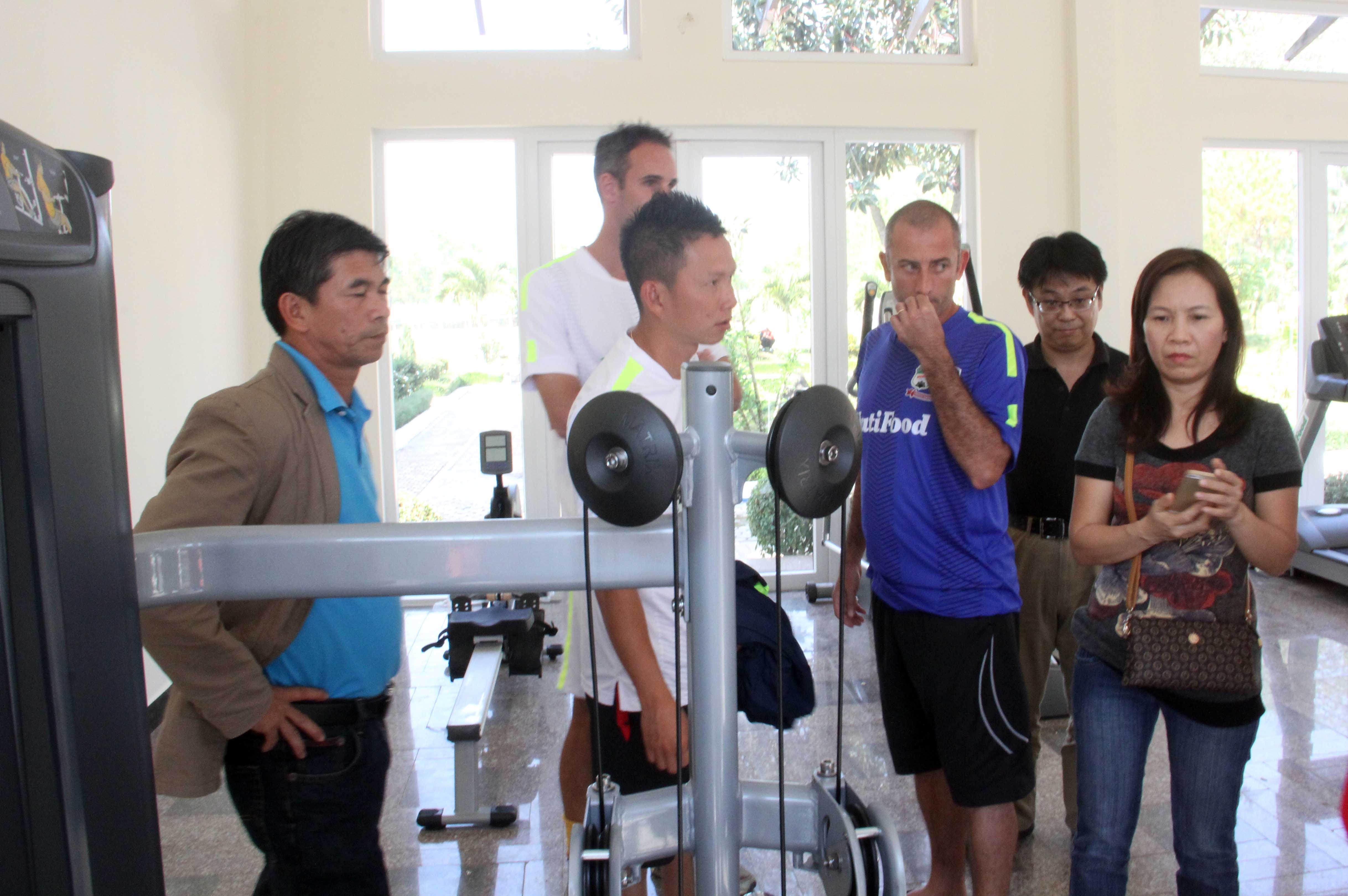 | Toàn bộ cầu thủ HAGL chăm chú theo dõi nhân viên hướng dẫn sử dụng các loại máy móc hiện đại. |