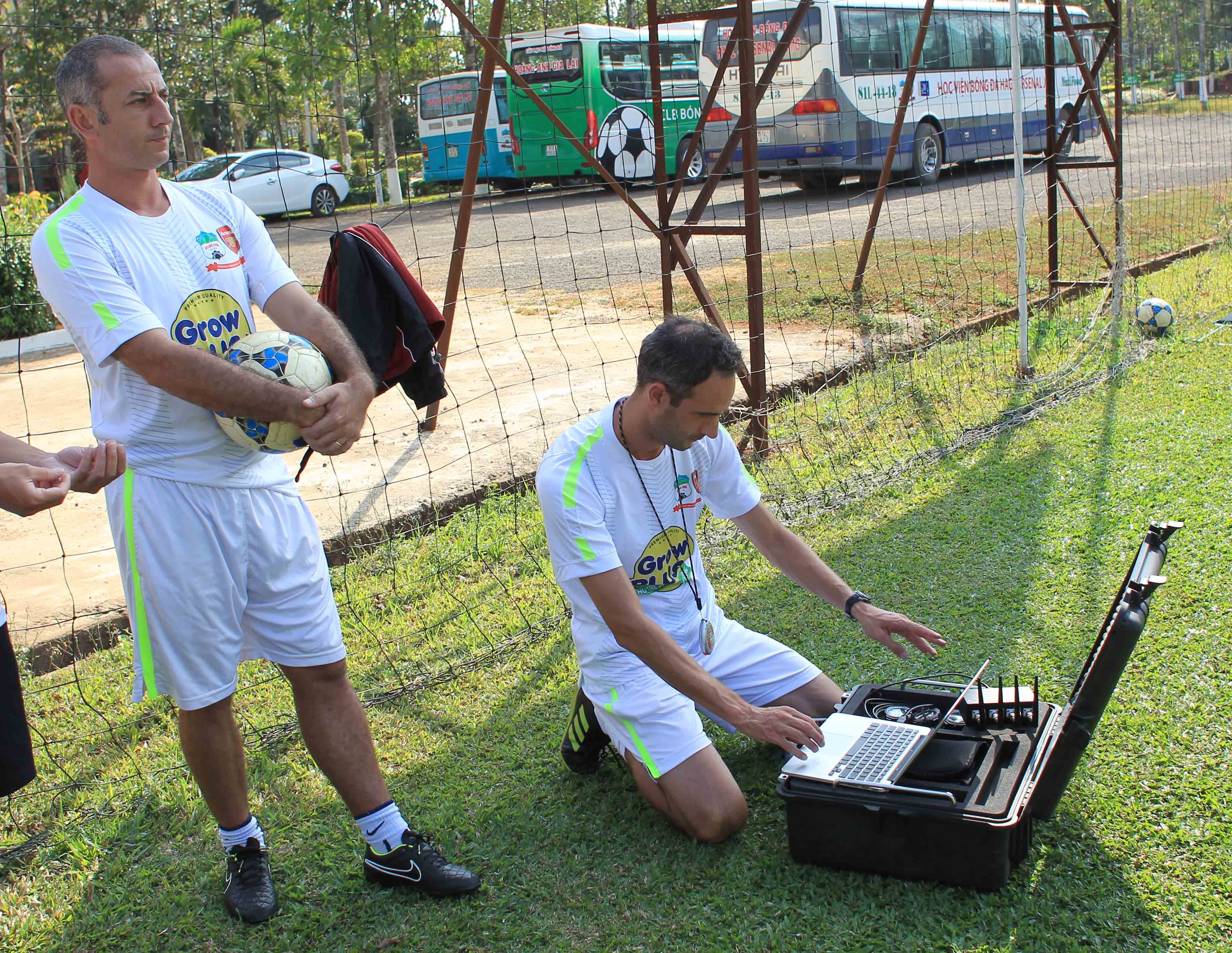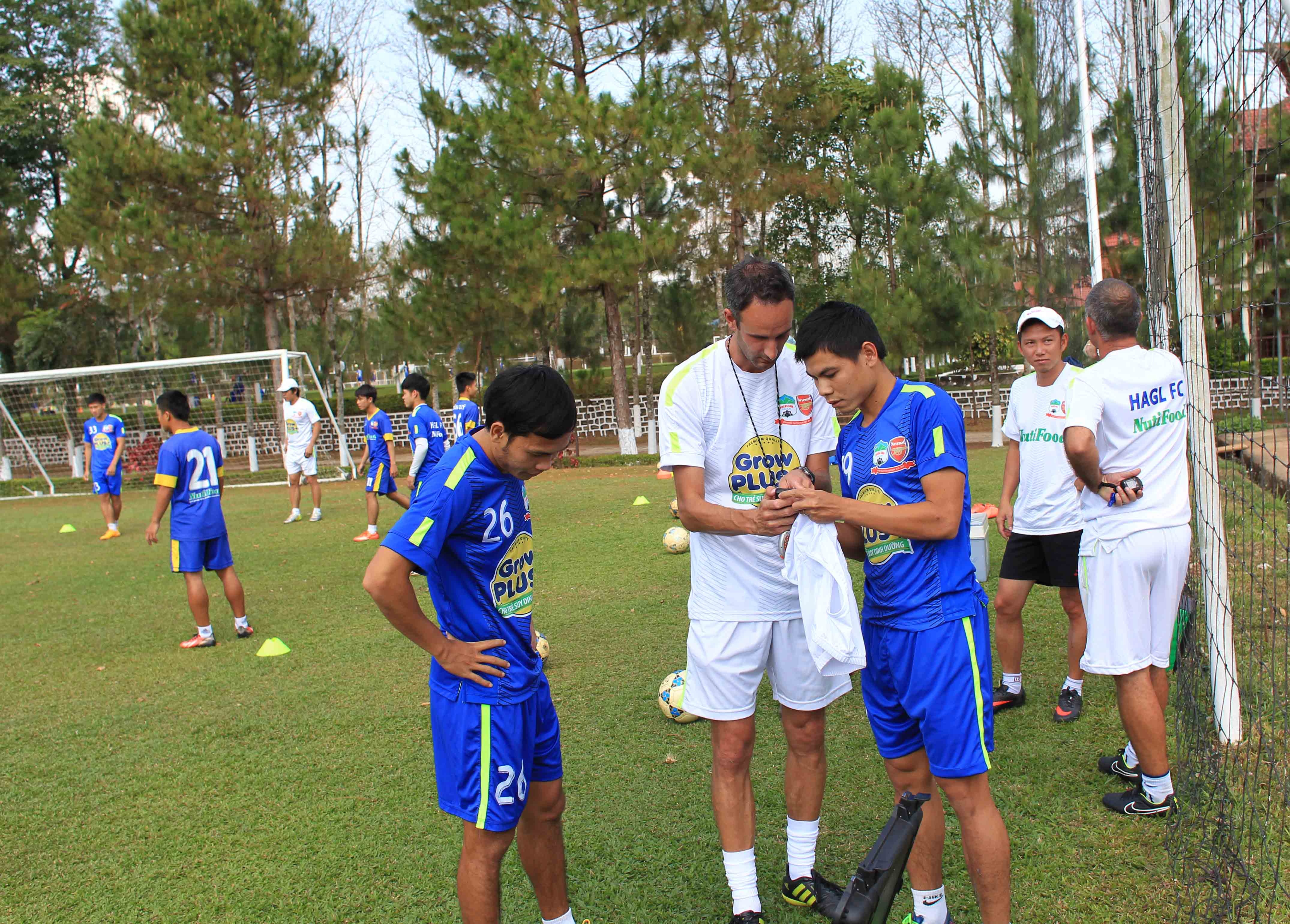 | Ông thầy người Pháp cùng trợ lý Anthony Debant kiểm tra các thông số của cầu thủ sau kỳ nghỉ Tết. Cũng như các đội bóng khác tại V.League, HAGL chủ yếu tập thể lực trong những ngày tới. |