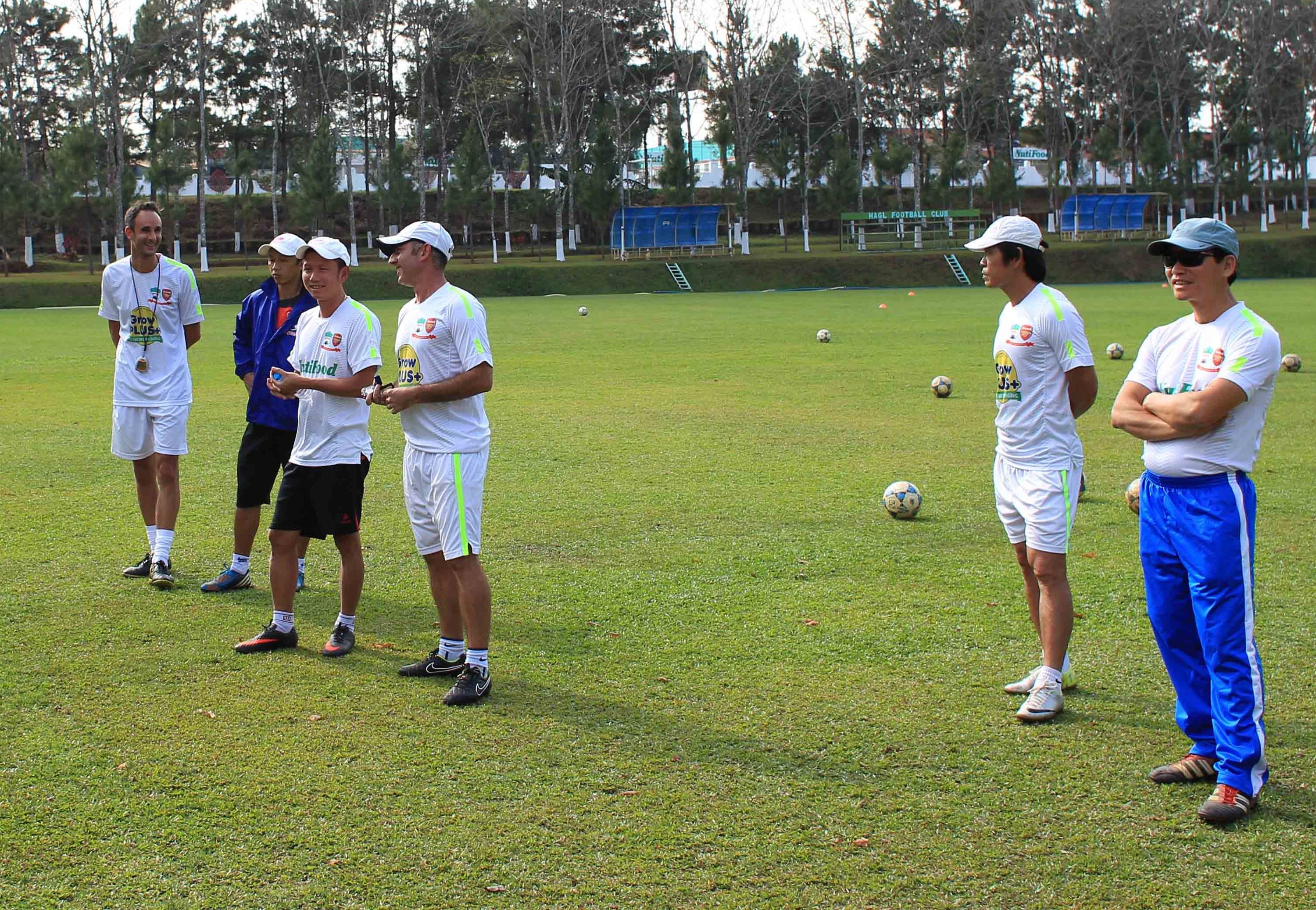 | Bắt đầu buổi tập, HLV Graechen gửi lời chúc sức khỏe đến các học trò. Do trợ lý Trần Quốc Tuấn lên tập trung cùng đội Olympic Việt Nam nên thầy "Giôm" đã đôn ông Dương Minh Ninh lên thay thế. Bên cạnh đó, ông cũng gọi thêm 9 cầu thủ từ khóa I, II của học viện HAGL-Arsenal JMG để có đủ quân số tập. |
