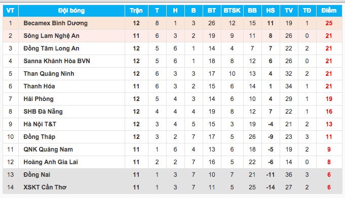 Vòng 12 V.League hứa hẹn sẽ tạo nên xáo trộn lớn ở nhóm cuối bảng khi các đội đều thi đấu chiều 3/5. Trên sân Vinh, đội đứng áp chót Đồng Nai sẽ gặp chủ nhà SLNA. Đội cuối bảng Cần Thơ gặp Thanh Hóa trên sân nhà.