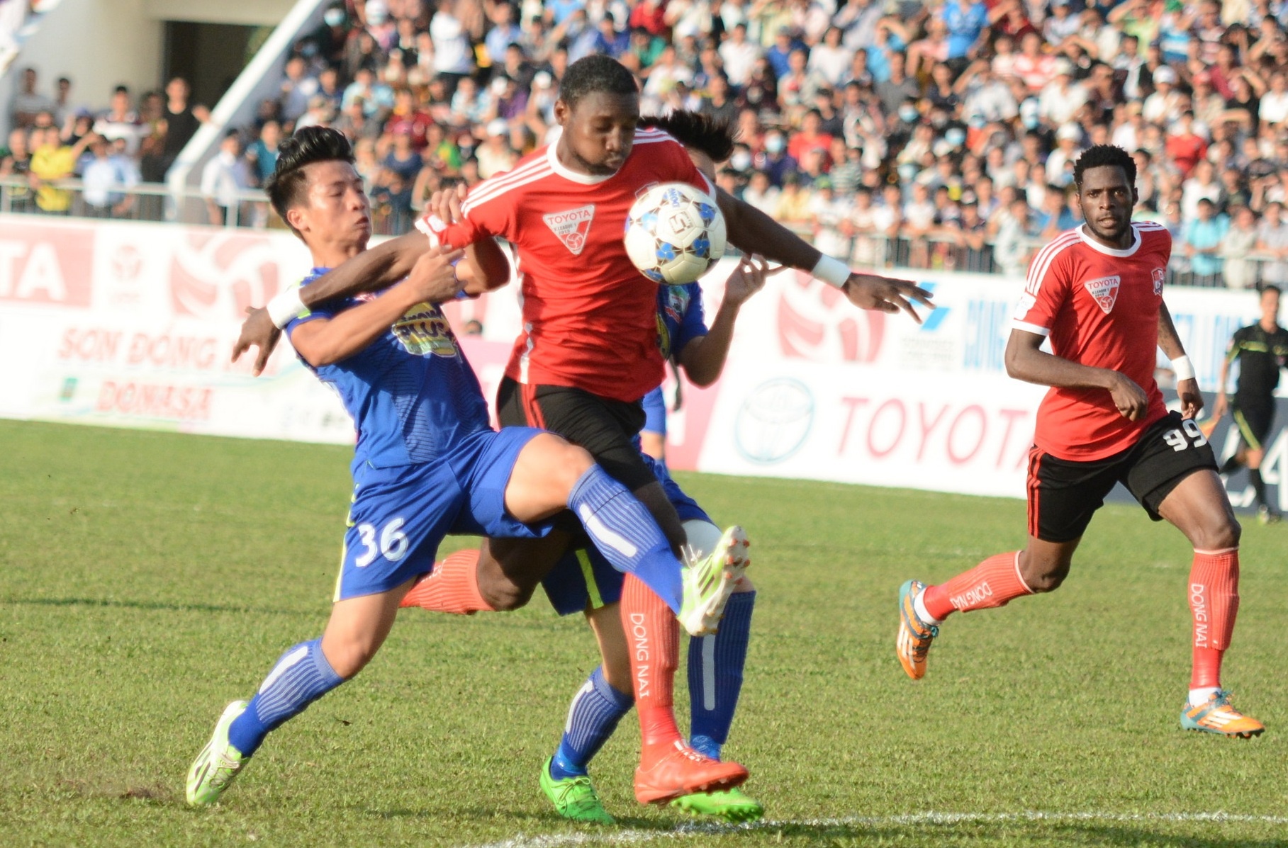Dù không kiểm soát bóng nhiều như HAGL, Đồng Nai lại là đội tạo ra nhiều pha bóng nguy hiểm hơn trong hiệp 1. Ảnh: Nguyễn Đăng.