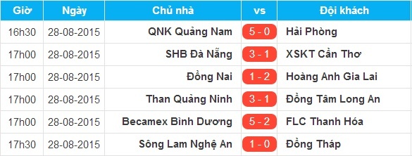 Kết quả các trận diễn ra lúc 17h ngày 28/8.
