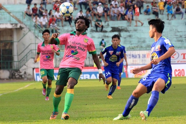 16': Đồng Tháp tấn công thiếu sắc nét và khá đơn giản. Họ sử dụng nhiều đường chuyền dài lên tuyến trên cho Samson hoặc Ajala.