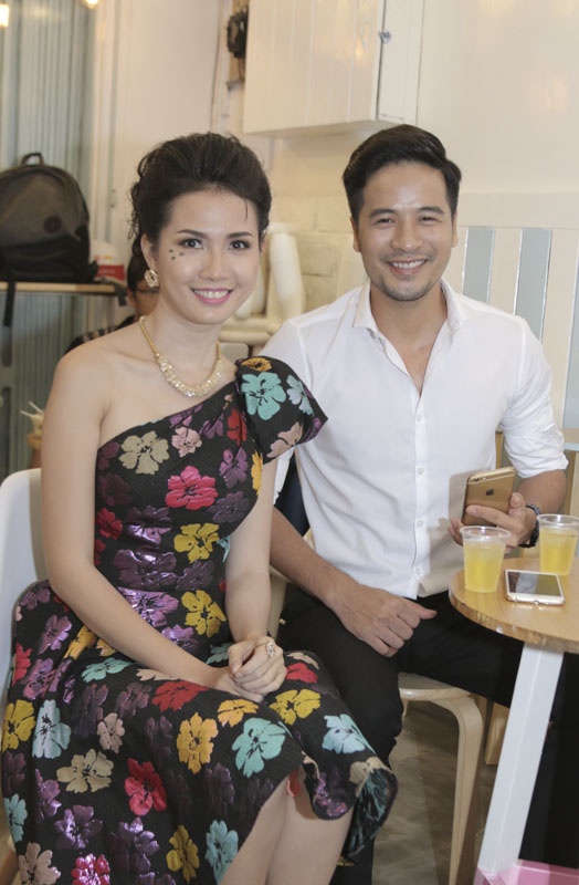 | Người đẹp Phan Thị Mơ và Đoàn Thanh Tài ăn vận lịch thiệp đến mừng đàn em "lên chức" bà chủ. |