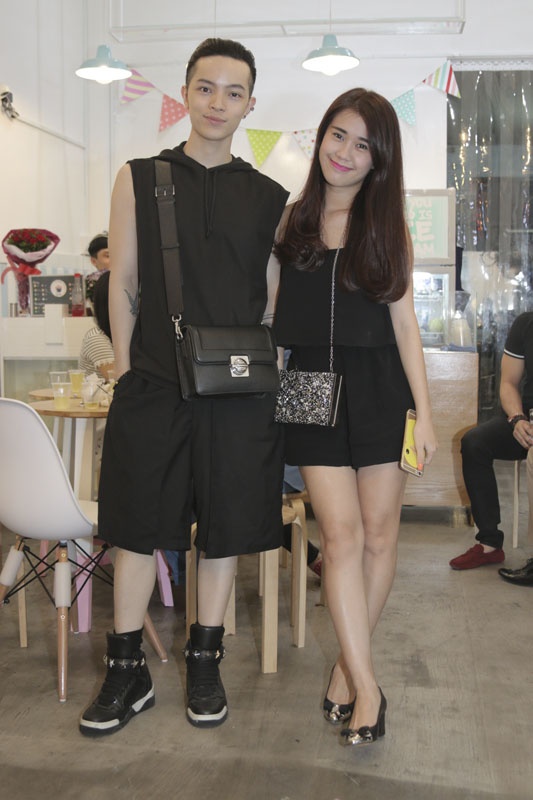 Khác với hình ảnh sành điệu thường thấy, hot boy Kelbin Lei và hot girl Ngọc Thảo diện trang phục đơn giản, khỏe khoắn dự tiệc khai trương. Cả hai quen biết chủ nhân buổi tiệc khi cùng tham gia phim Tiệm bánh hoàng tử bé.