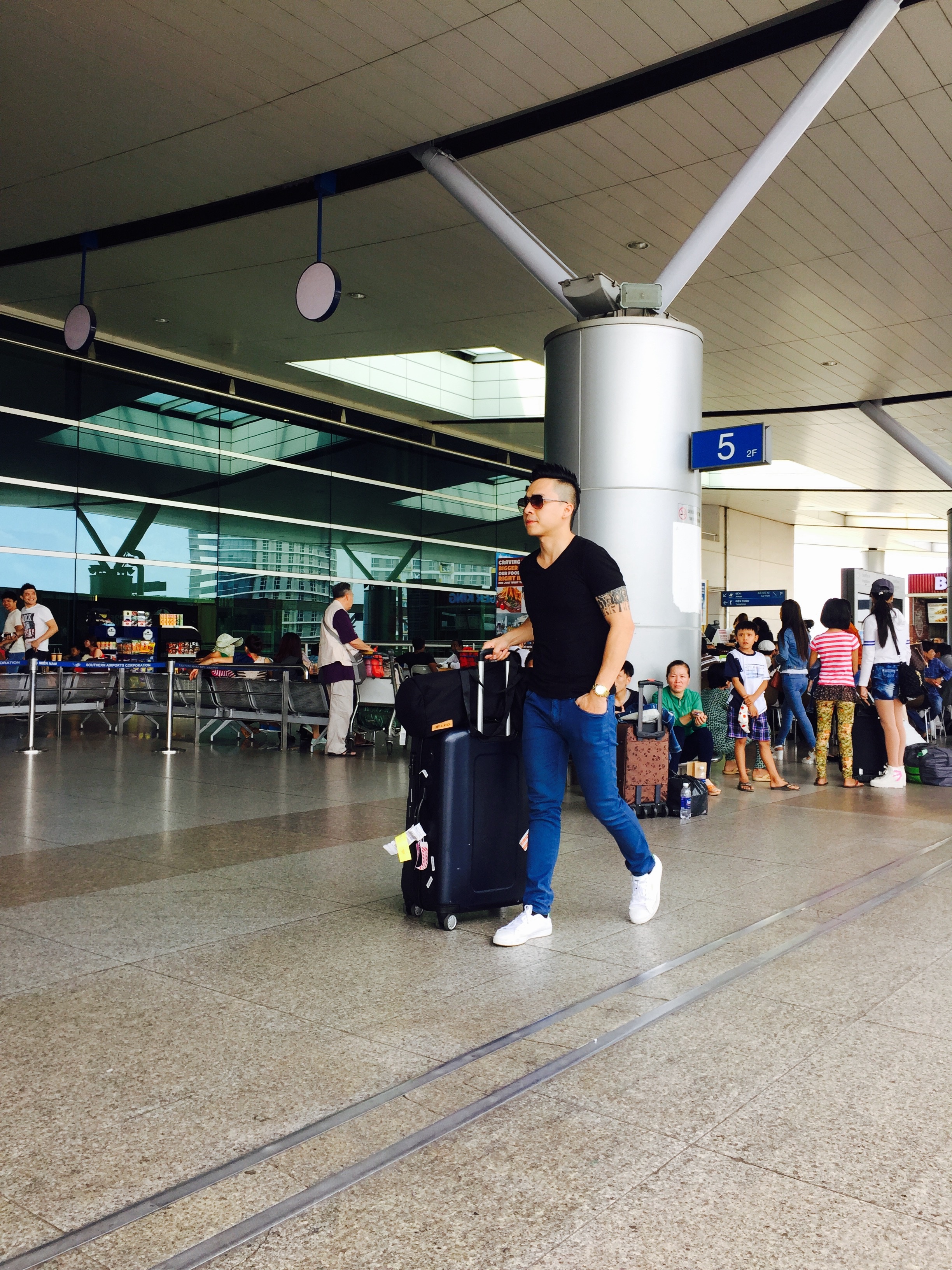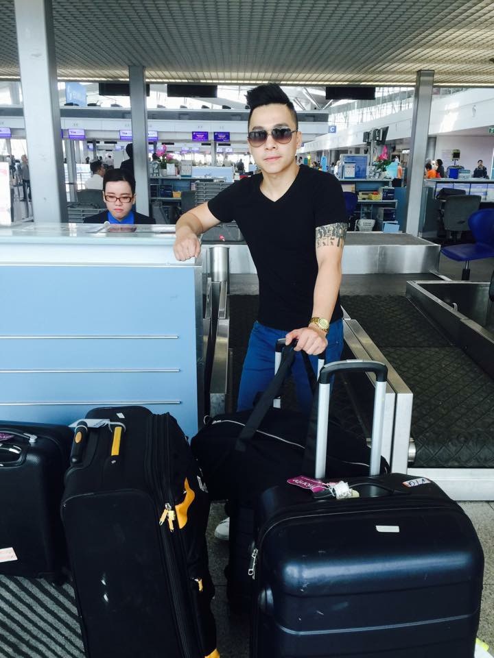 Mới đây, The Men ra sân bay Tân Sơn Nhất để lên đường sang Mỹ lưu diễn dài ngày. Tiến Dũng ăn vận trẻ trung, năng động với thời trang sân bay.