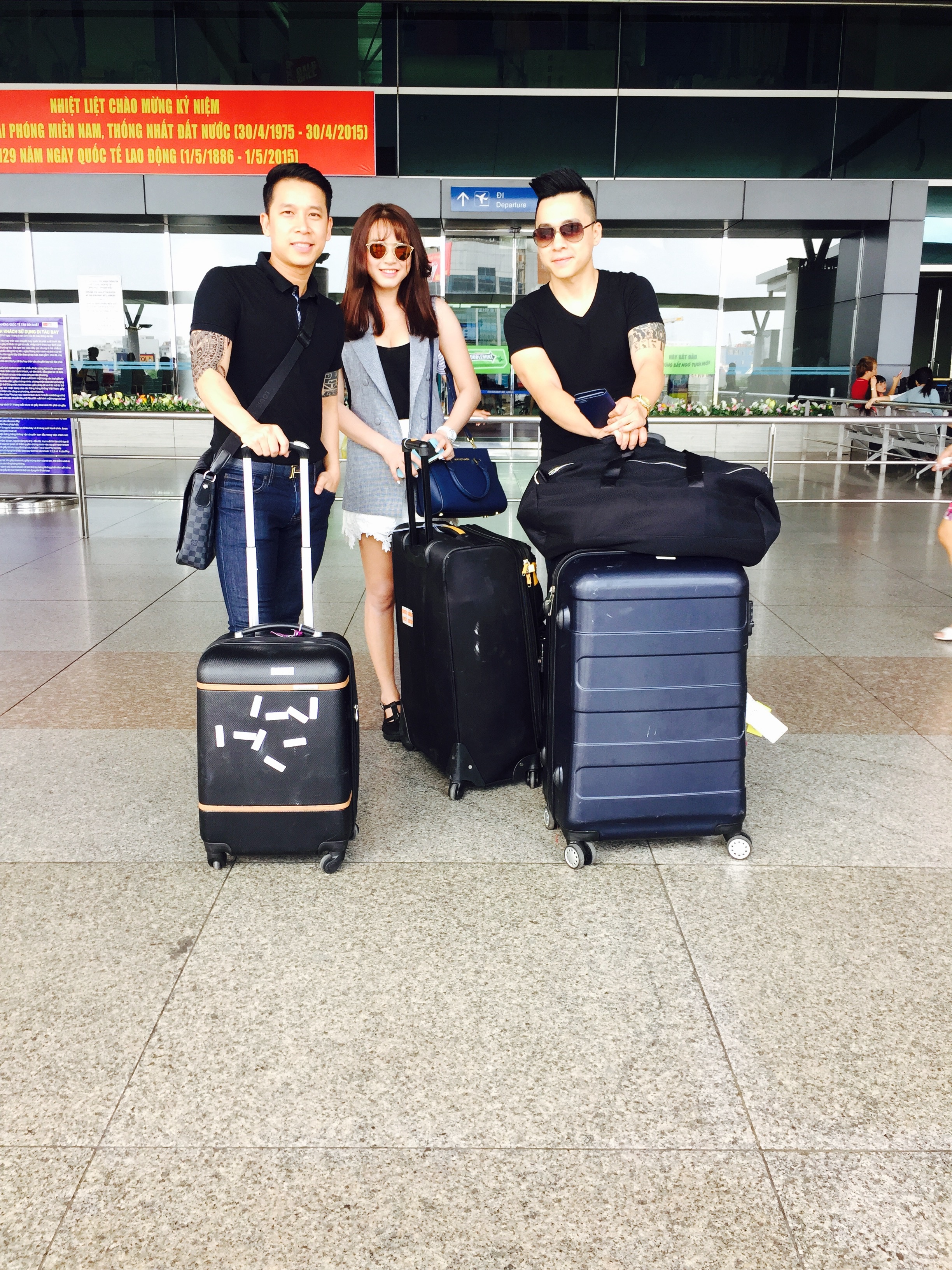 Có cùng lịch lưu diễn nước ngoài nên cặp đôi được dịp hội ngộ ở sân bay Tân Sơn Nhất.