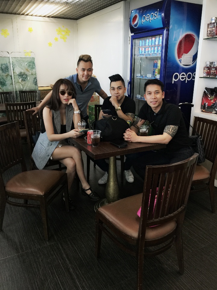 | Trước giờ bay của The Men, Hải Băng cũng bất ngờ xuất hiện ở Tân Sơn Nhất. Dịp này, cô có chuyến bay sang Hàn Quốc lưu diễn. Trùng giờ bay với nhóm nhạc, nên cô tranh thủ ra sớm để gặp gỡ The Men. |