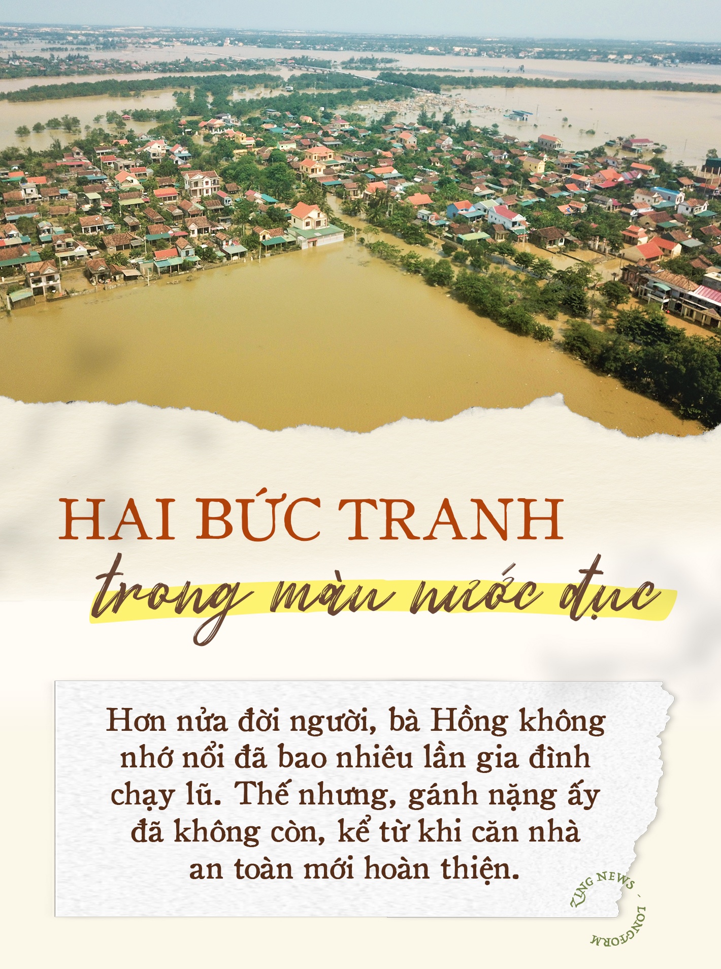 “Ngày trước, cứ lũ về là lại lên gác mái nhà, khi nước đến đó thì chỉ biết kêu làng, kêu xóm. Năm nay lũ lớn, may sao có căn nhà, không còn phải ôm đàn gà mái, đồ đạc chạy lũ như trước nữa”, bà Hồng kể.