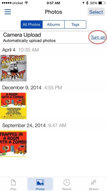 Với OneDrive, sau khi cài đặt, bạn chạm vào biểu tượng Photos, kích hoạt tính năng Camera Upload (chọn Turn On), chấp nhận cho phép OneDrive truy cập vào thư viện ảnh của mình.