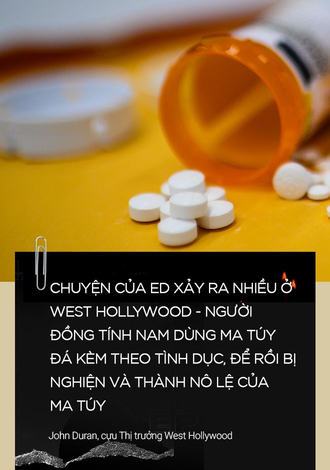 Khi đi khách như vậy, ma túy đá được dùng thường xuyên trong cộng đồng người đồng giới (gấp 20 lần so với trung bình), khiến con người trở nên buông thả hơn. Một bác sĩ chuyên về ma túy cho biết người dùng meth có những hoang tưởng đen tối hơn bình thường, như “hoang tưởng về quyền lực, hoang tưởng về việc đi lạm dụng người khác”.