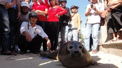 Hiện Chi cục Thủy sản đang phối hợp với Trung tâm giáo dục thiên nhiên Việt Nam vận động và tìm cách hỗ trợ ngư dân để thả con hải cẩu này về biển.