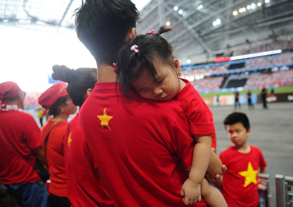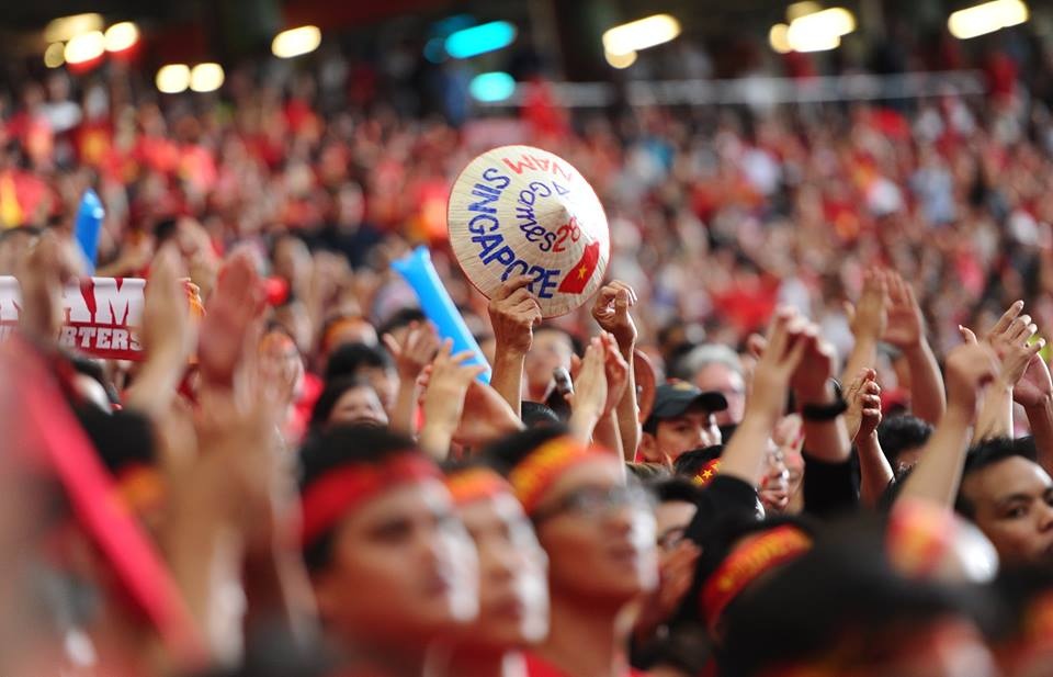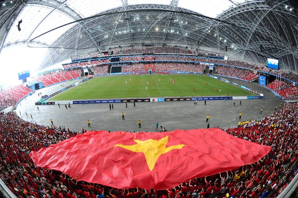 | Sân vận động quốc gia Singapore trước sức nóng của trận đấu. CĐV Việt Nam gây ấn tượng khi phủ đỏ một góc khán đài, hò hét cổ vũ trong suốt cả trận đấu. |