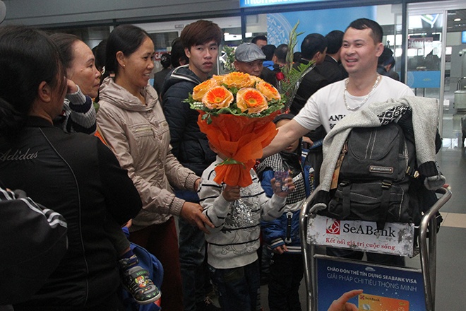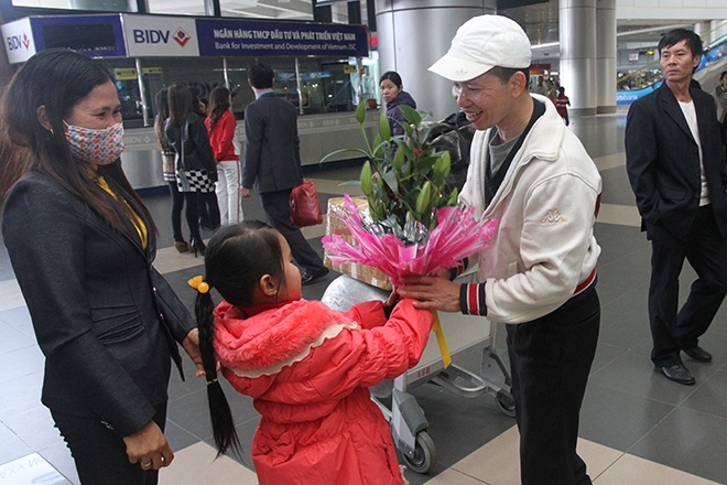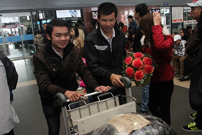 | Cũng có nhiều người trong số họ là Việt kiều về nước. Họ nhận những bó hoa tươi thắm từ người thân tại sân bay. |