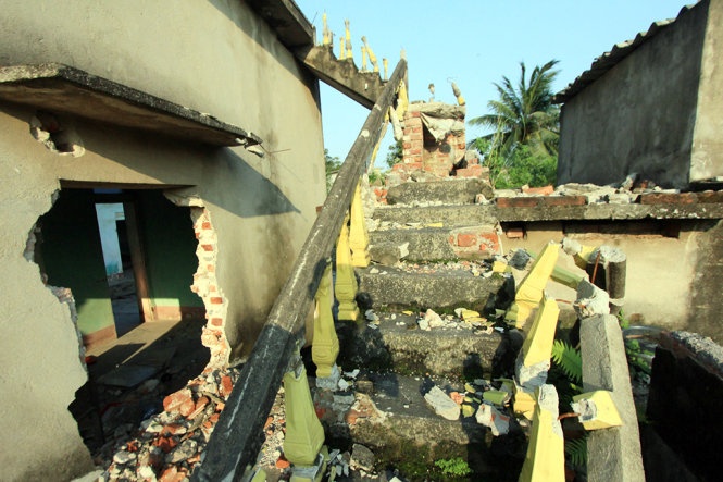 Hiện trường việc một số ngôi nhà tại khu Tử Lạc 1 của thị trấn Minh Tân (Hải Dương) được cho là bị đập phá . |