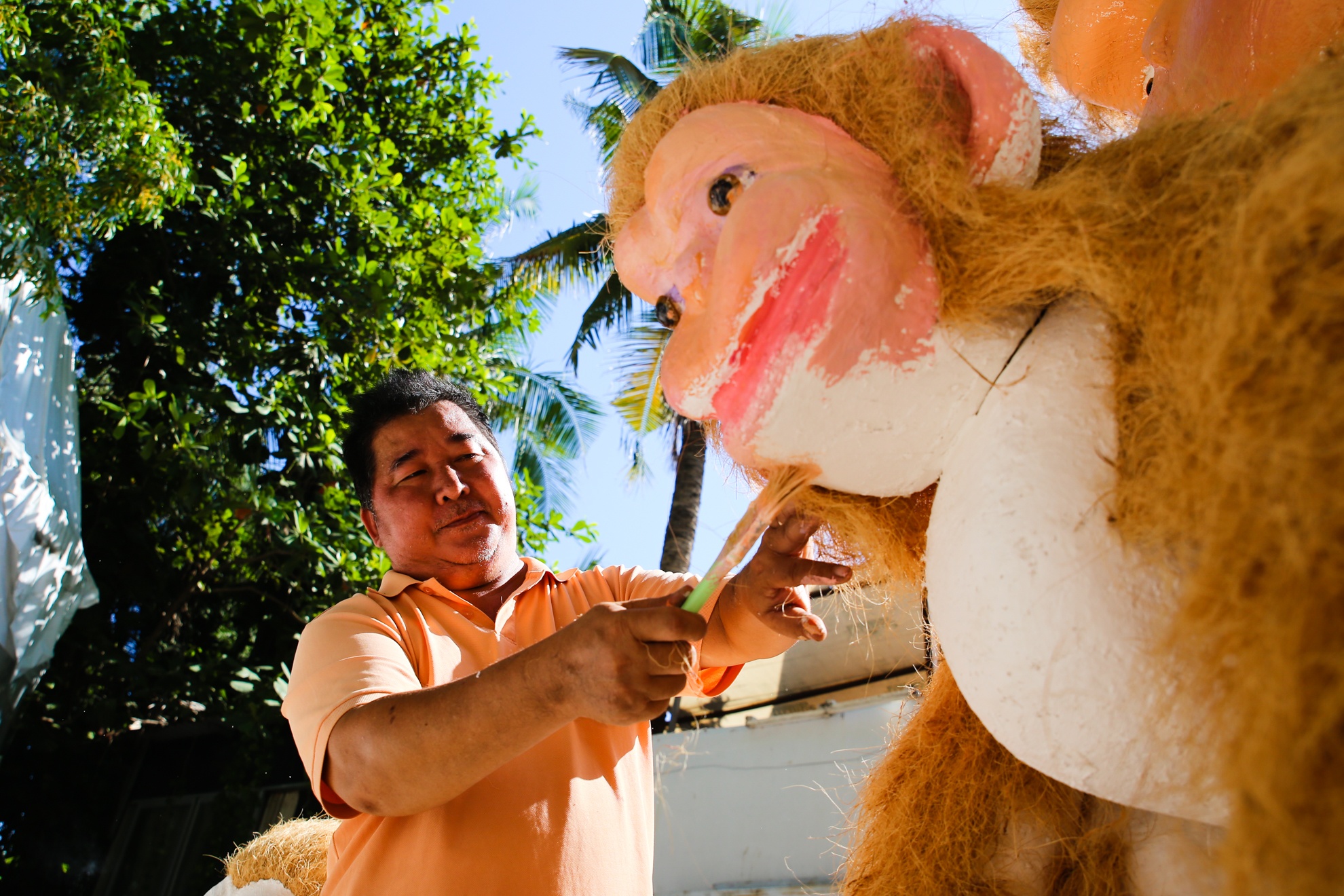 "Năm nay công đoạn tỉ mỉ nhất là việc tạo lông cho khỉ, mất nhiều thời gian. Công đoạn này chúng tôi thử nghiệm bằng nhiều phương pháp và chọn ra cách 'cấy lông' thẳng vào linh vật để tạo được vẻ tự nhiên. Tuy hơi mất thời gian nhưng nhìn rất đẹp. Hiện công việc đã hoàn tất khoảng 90%", nghệ nhân Phương nói.